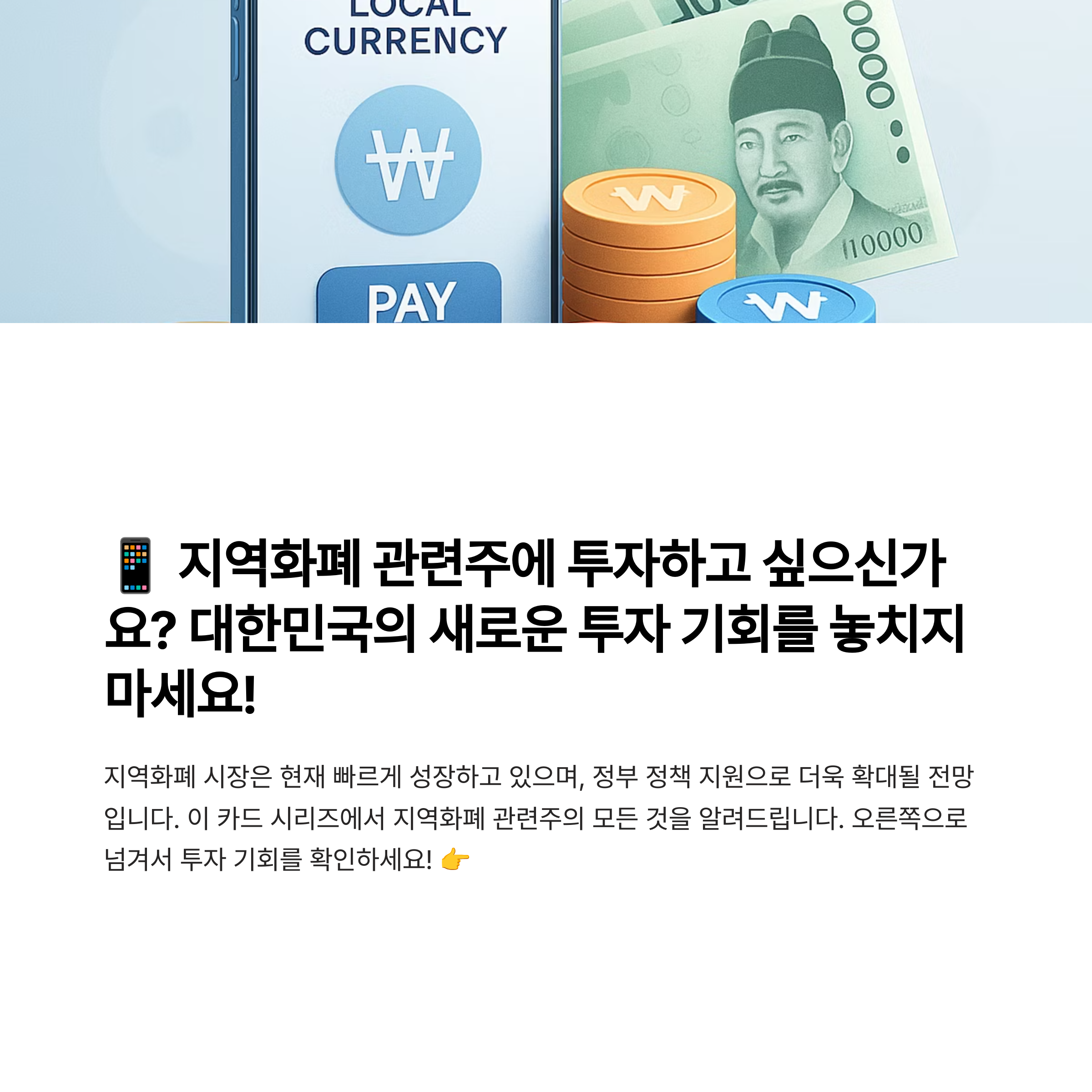 A. 가장 큰 이유는 2026년 지방선거를 앞두고 있다는 점입니다. 2025년부터는 지역 민심을 얻기 위한 정책들이 본격화될 가능성이 높으며, 지역화폐는 그중 가장 효과적인 수단 중 하나입니다. 따라서 정책적 지원과 예산 증액에 대한 기대감이 매우 높아 관련주들이 시장의 주목을 받을 확률이 높습니다.