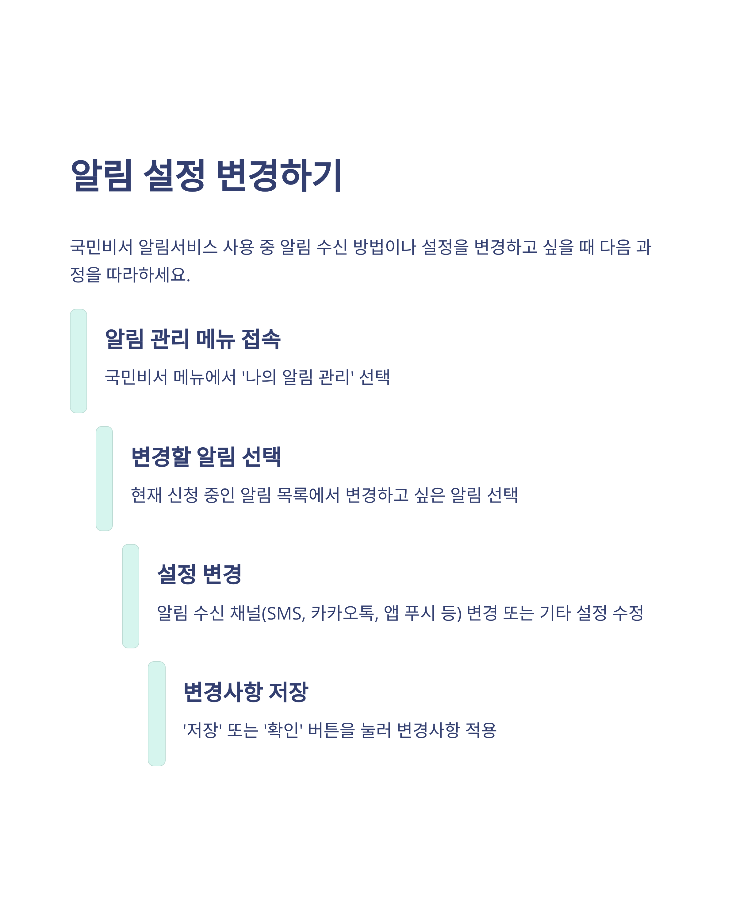 국민비서 누리집에서 로그인하면 나의 알림 내역을 한눈에 확인할 수 있습니다. 과거에 어떤 알림을 받았고, 어떤 서비스가 활성화되어 있는지 주기적으로 확인하는 것이 좋습니다.