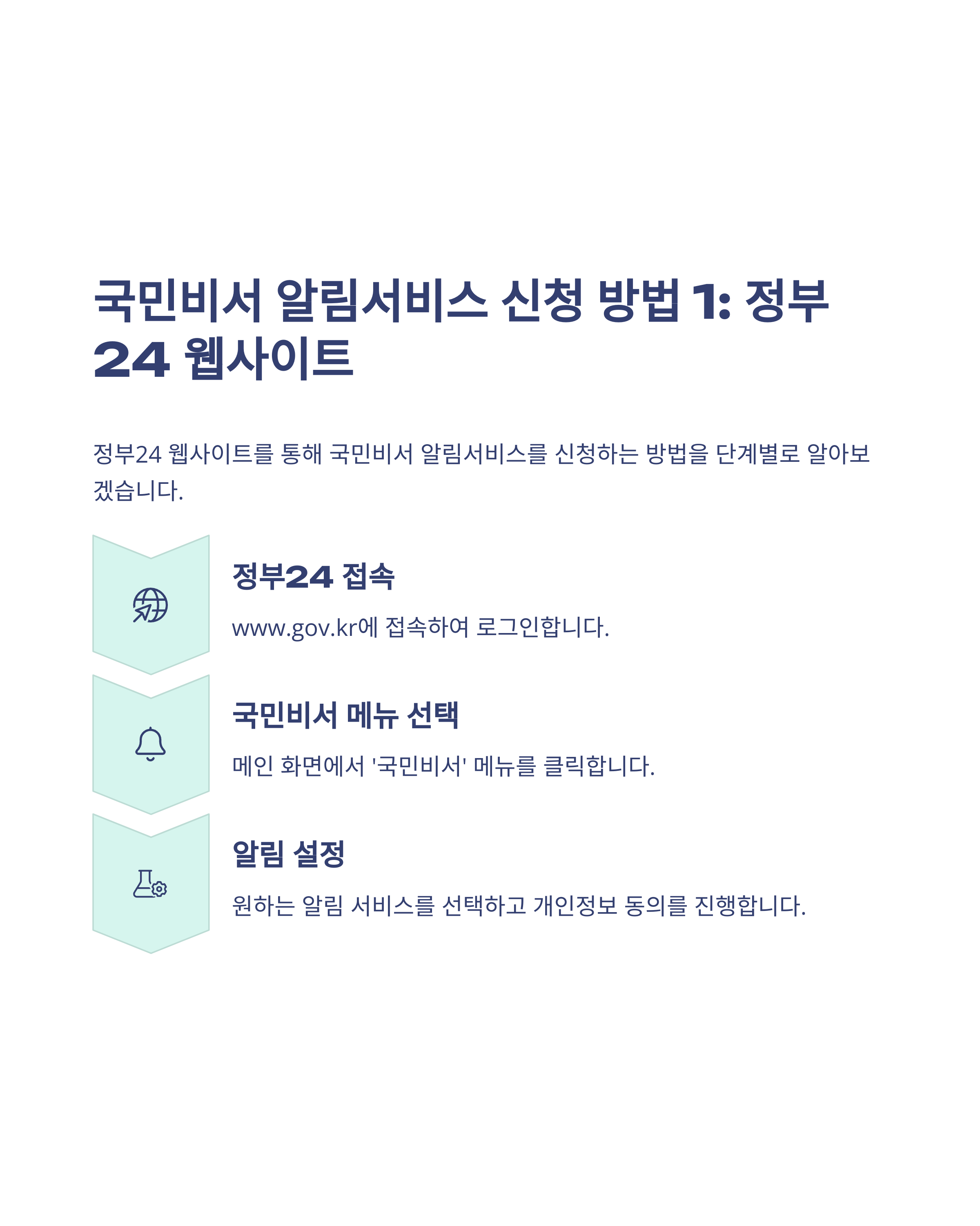 국민비서 누리집을 통한 신청은 가장 기본적인 방법이며, 모든 알림 서비스와 수신 채널을 한눈에 확인하고 설정할 수 있다는 장점이 있습니다.