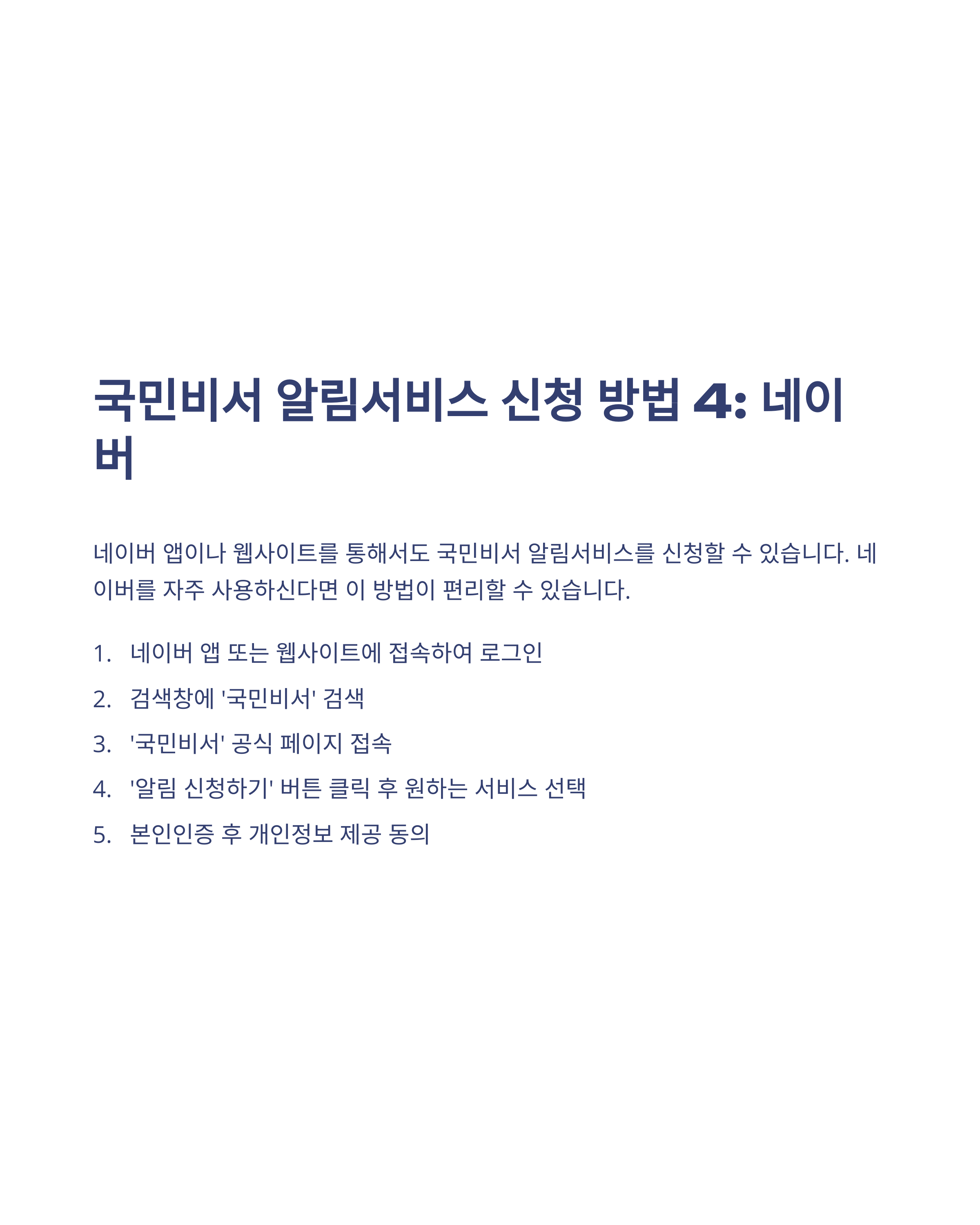 네이버 앱을 통해 신청하면 평소 자주 사용하는 앱에서 편리하게 정부 알림을 받아볼 수 있으며, 네이버 페이와 연동되어 납부가 필요한 경우 더욱 간편하게 처리할 수 있습니다.
