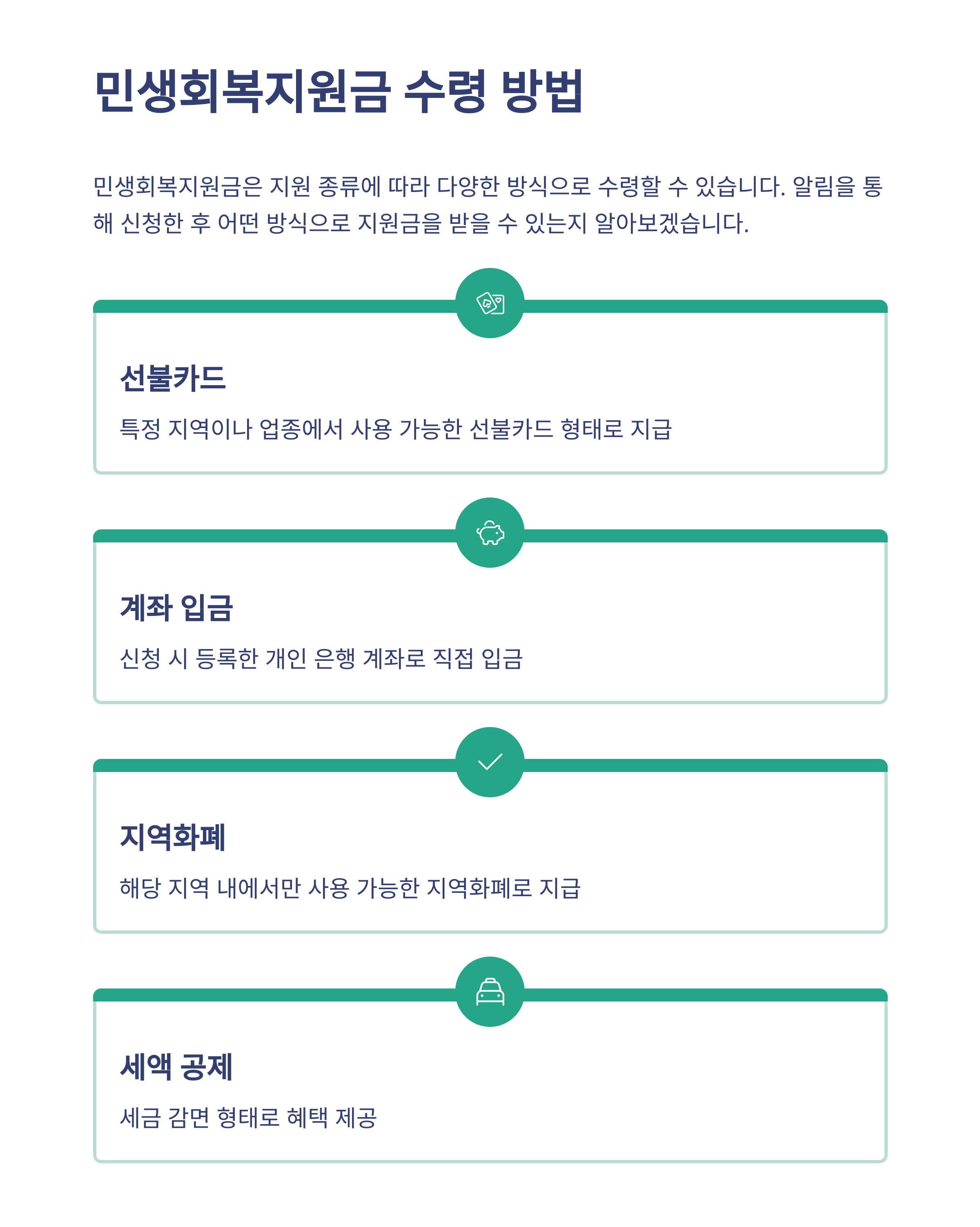 - 지급 시기: 신청 다음 날부터 쿠폰 자동 충전 (선불카드/지류형은 주민센터 신청 시 당일 수령 가능)
