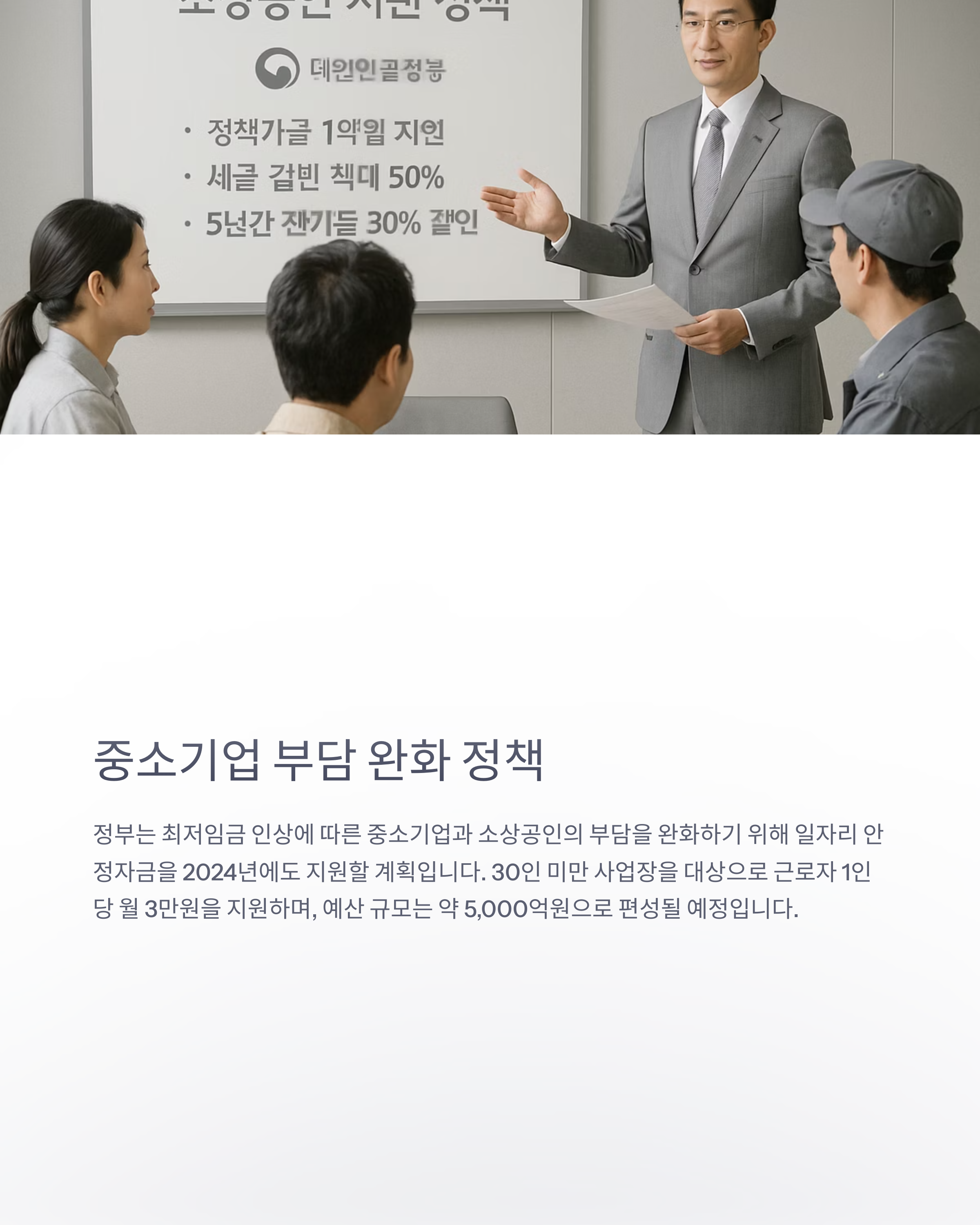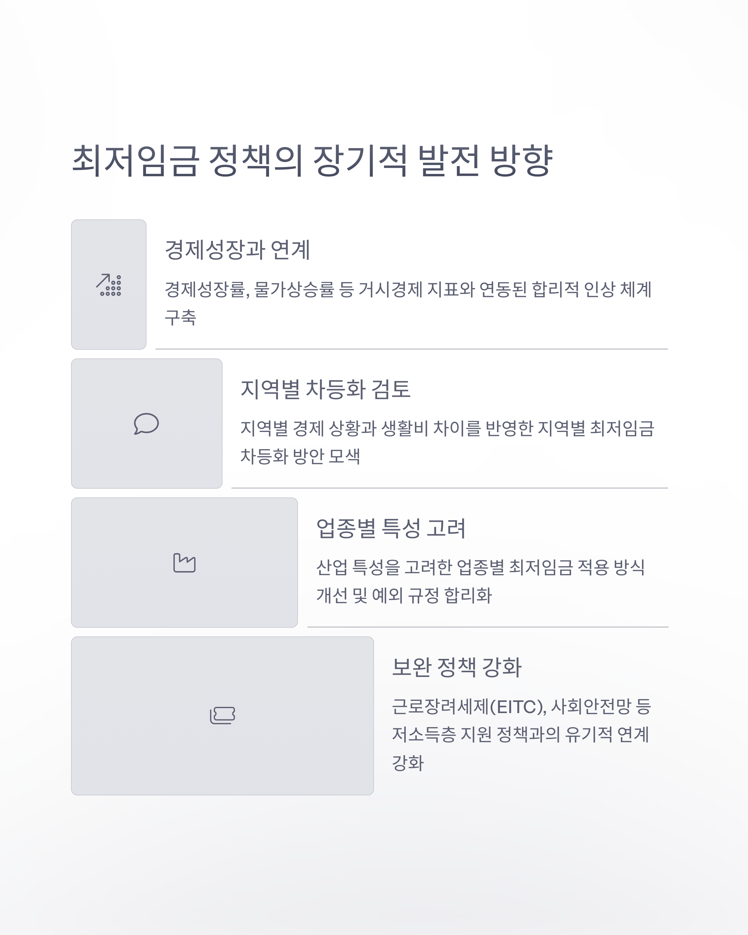 2026년 최저임금 10,440원 인상에 따른 긍정적 효과를 극대화하고 부정적 영향을 최소화하기 위해서는 정부의 선제적이고 효과적인 역할과 보완 대책 마련이 필수적입니다.