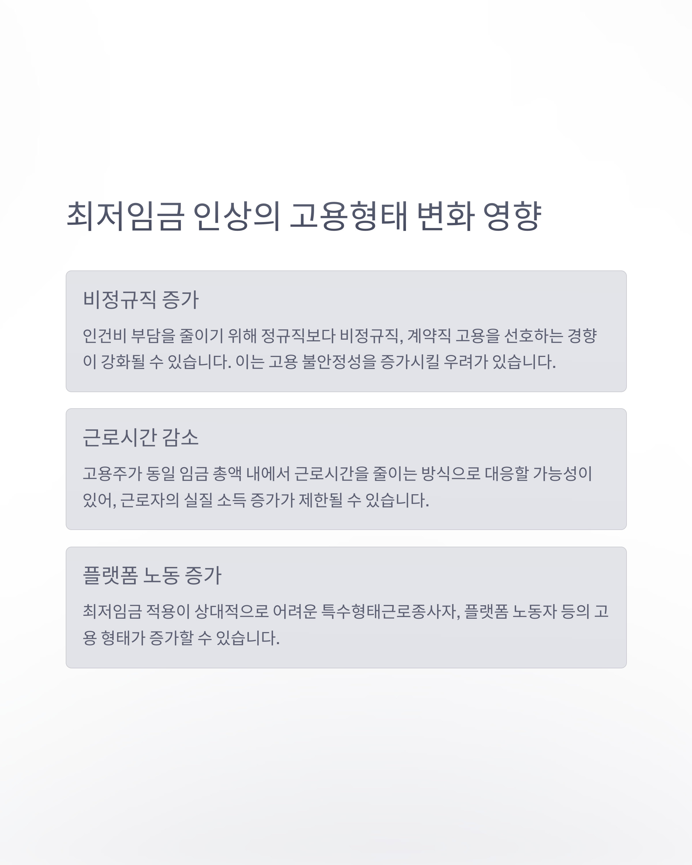 최저임금 인상은 비정규직, 파견직, 그리고 영세 사업장 근로자 등 노동 시장의 취약 계층에게 더 큰 긍정적 영향을 미칠 수 있습니다. 이들의 소득이 직접적으로 증가하면서 생활 안정성이 높아지고, 불평등 완화에 기여할 수 있습니다. 하지만 동시에 영세 사업장의 경영난이 심화될 경우, 불법적인 임금 미지급이나 고용 형태 변경(예: 단기 계약 전환)과 같은 부작용이 발생할 가능성도 있어 정부의 철저한 관리 감독이 필요합니다.
