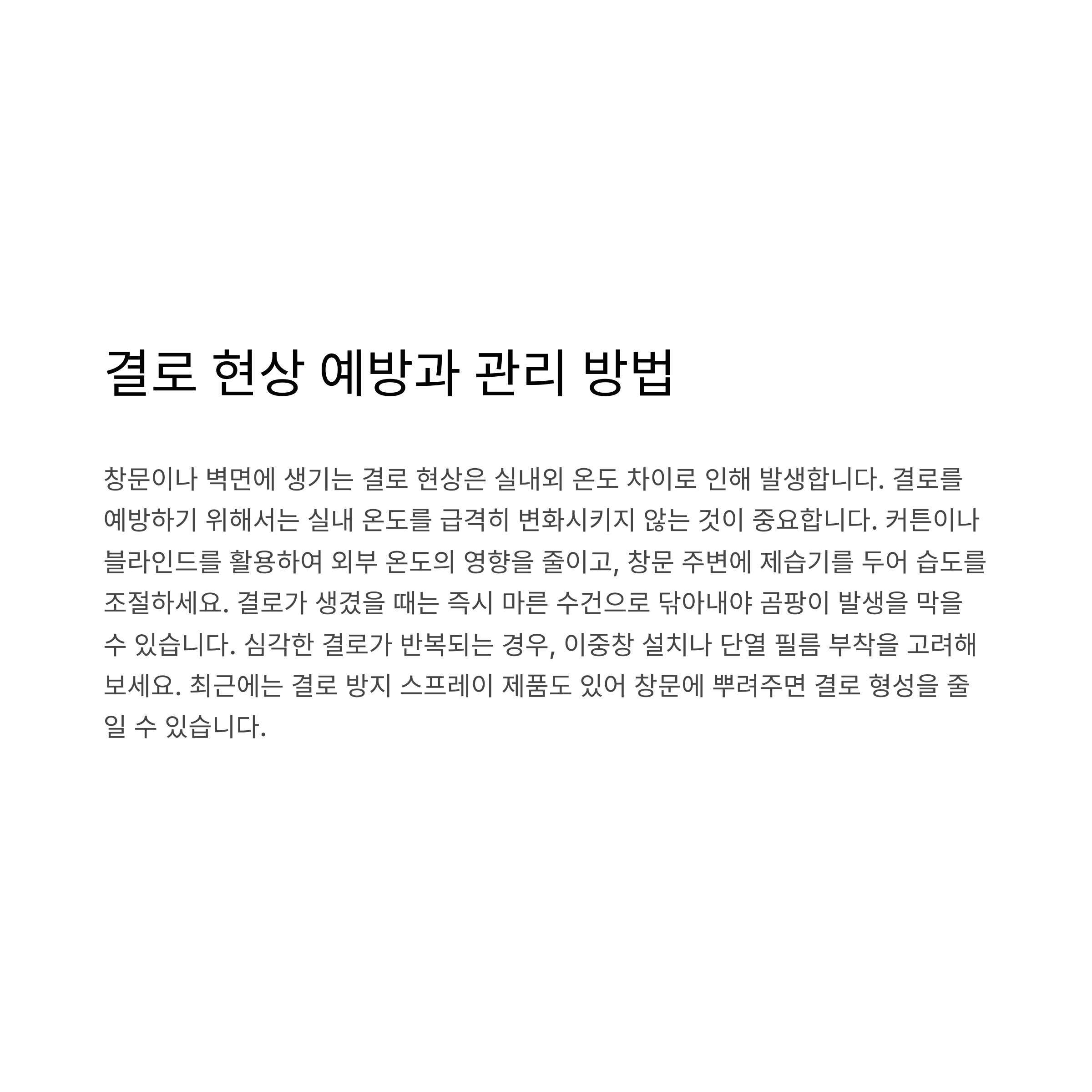 - 김 서림 방지: 뜨거운 음식 조리 시 창문을 약간 열어 김 서림을 방지하고 습기 발생을 줄입니다.