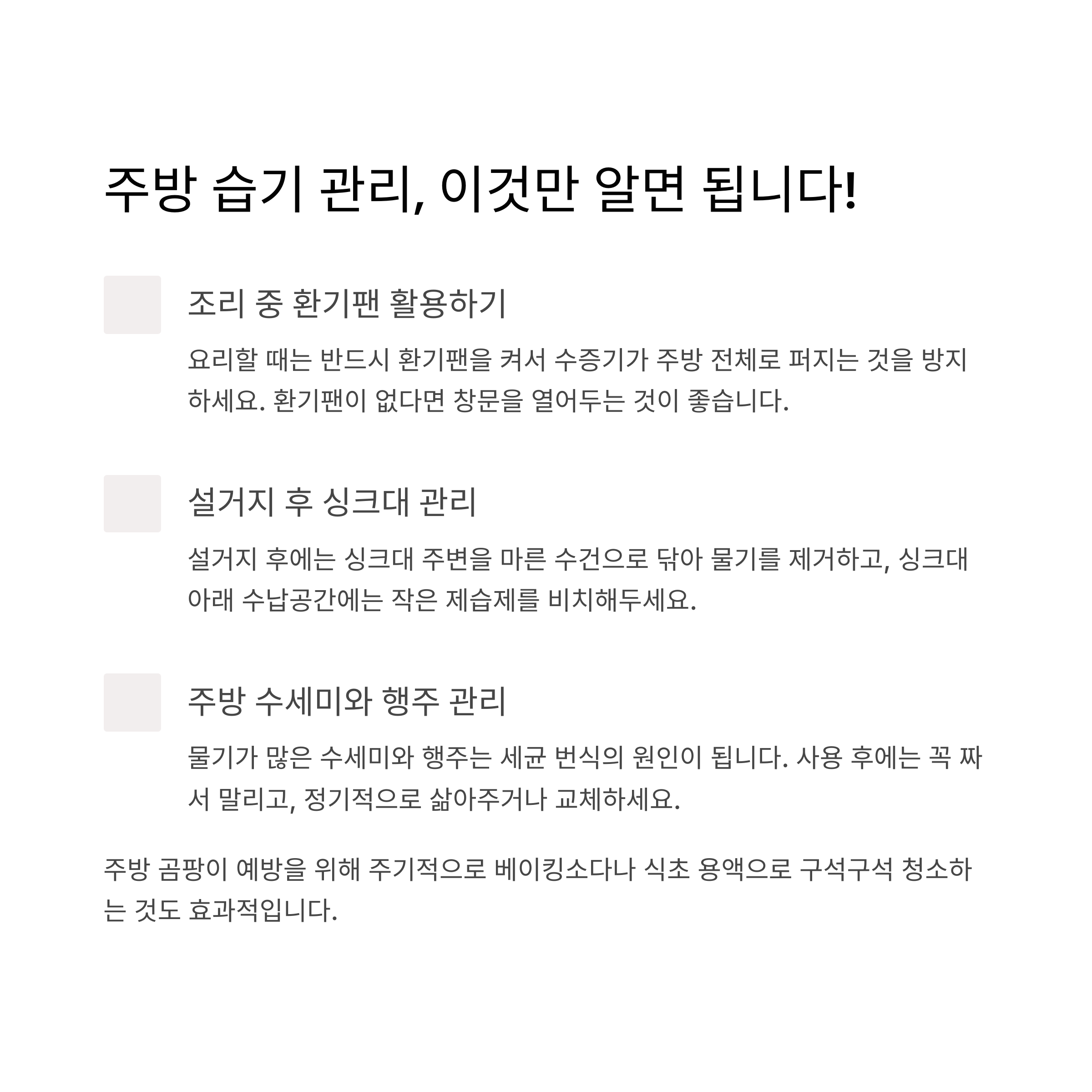 🎯 주방, 욕실 습기 제거: 위생이 핵심!