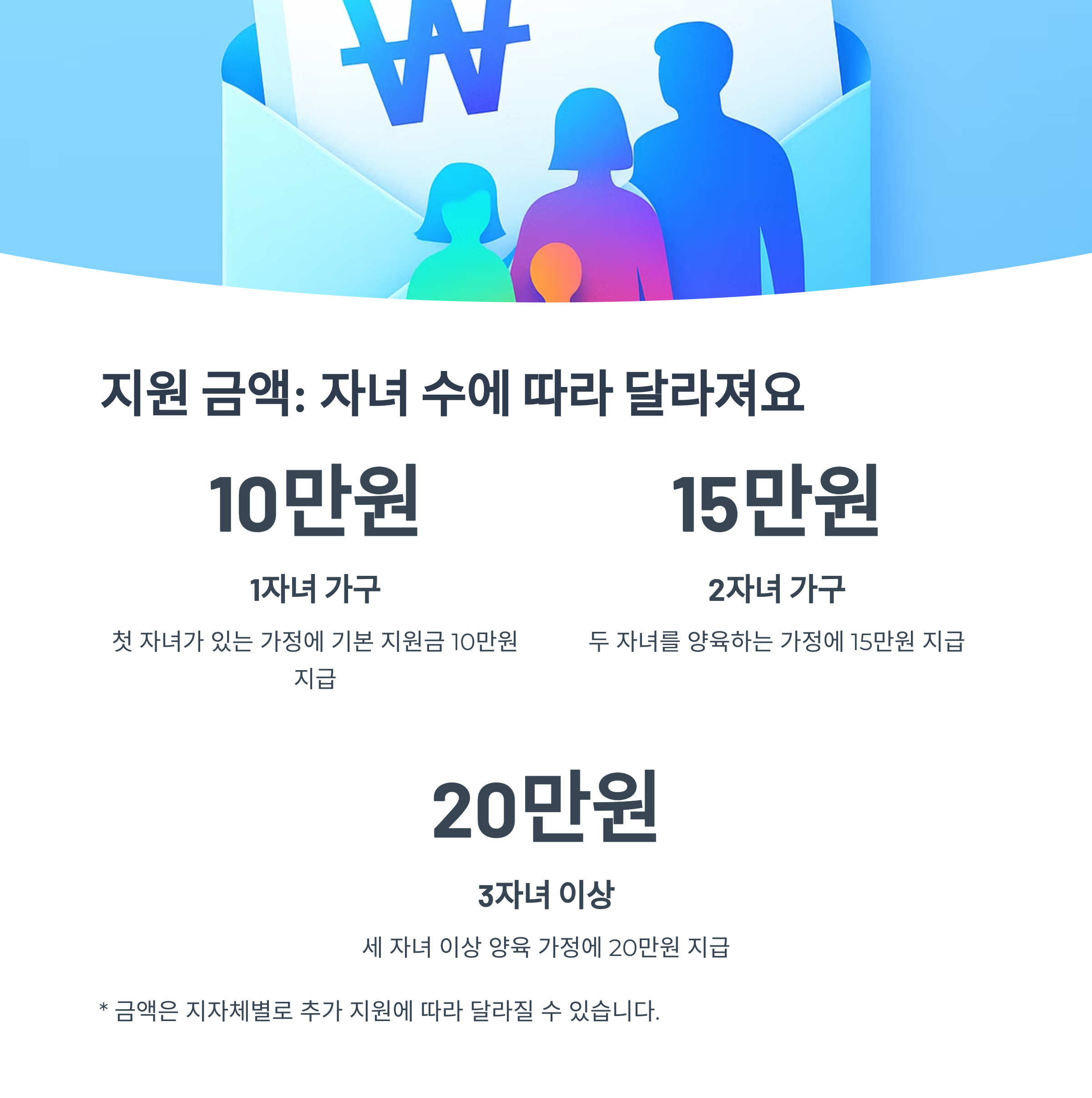 - 2️⃣ 최대 금액 확인: 우리 가족의 소득 수준과 거주 지역(비수도권/인구감소지역 여부)을 따져 1인당 받을 수 있는 최대 금액을 미리 계산해 보세요.