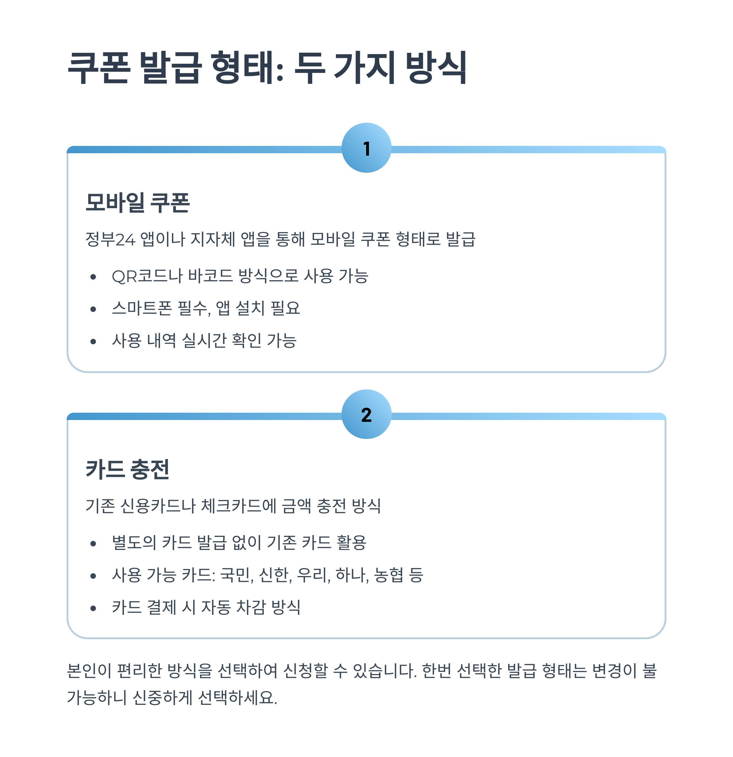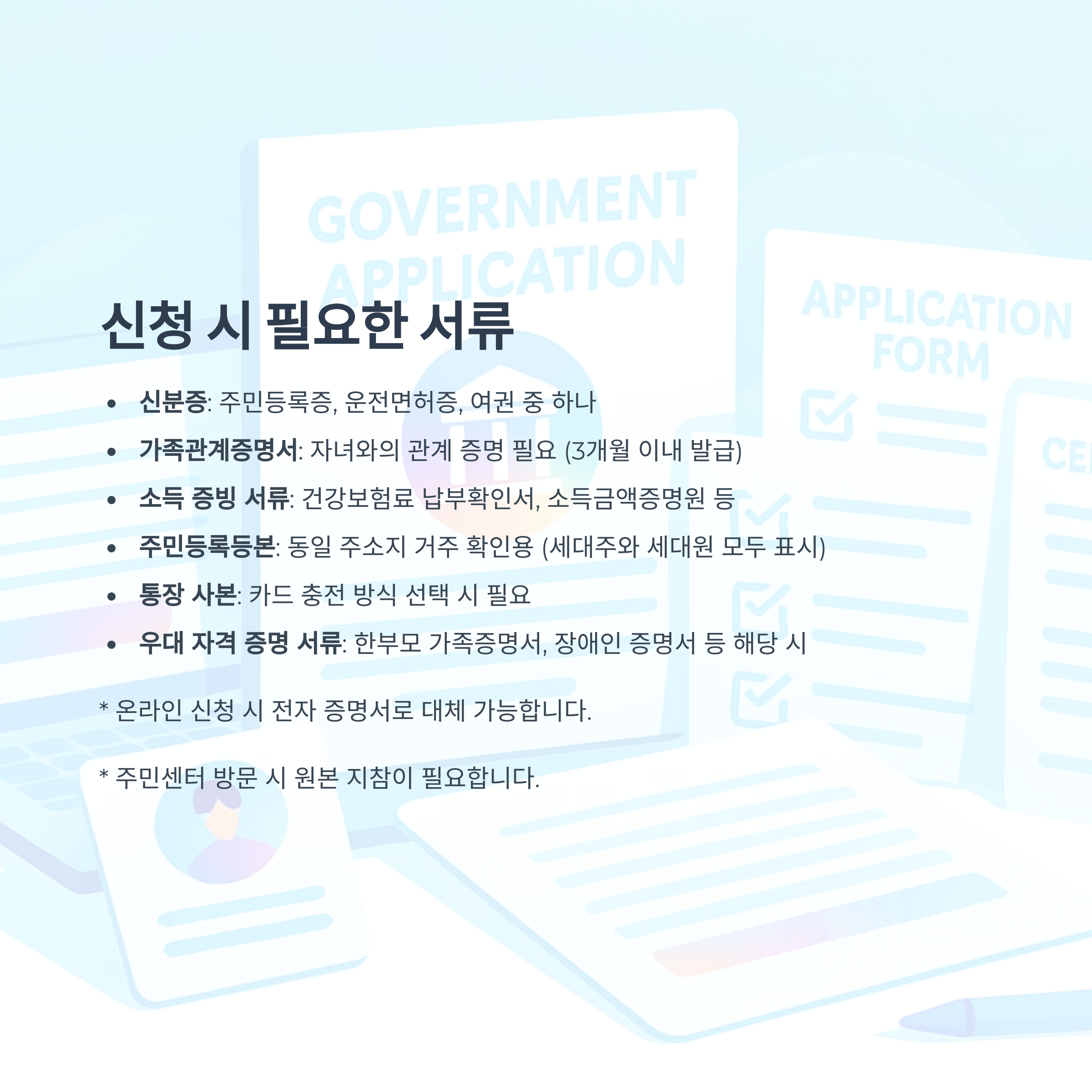 - 3️⃣ 신청 방법 선택: 편리한 온라인(카드사 앱) 신청을 우선 추천합니다. 온라인이 어렵다면 신분증을 지참하고 주민센터나 은행을 방문하세요.