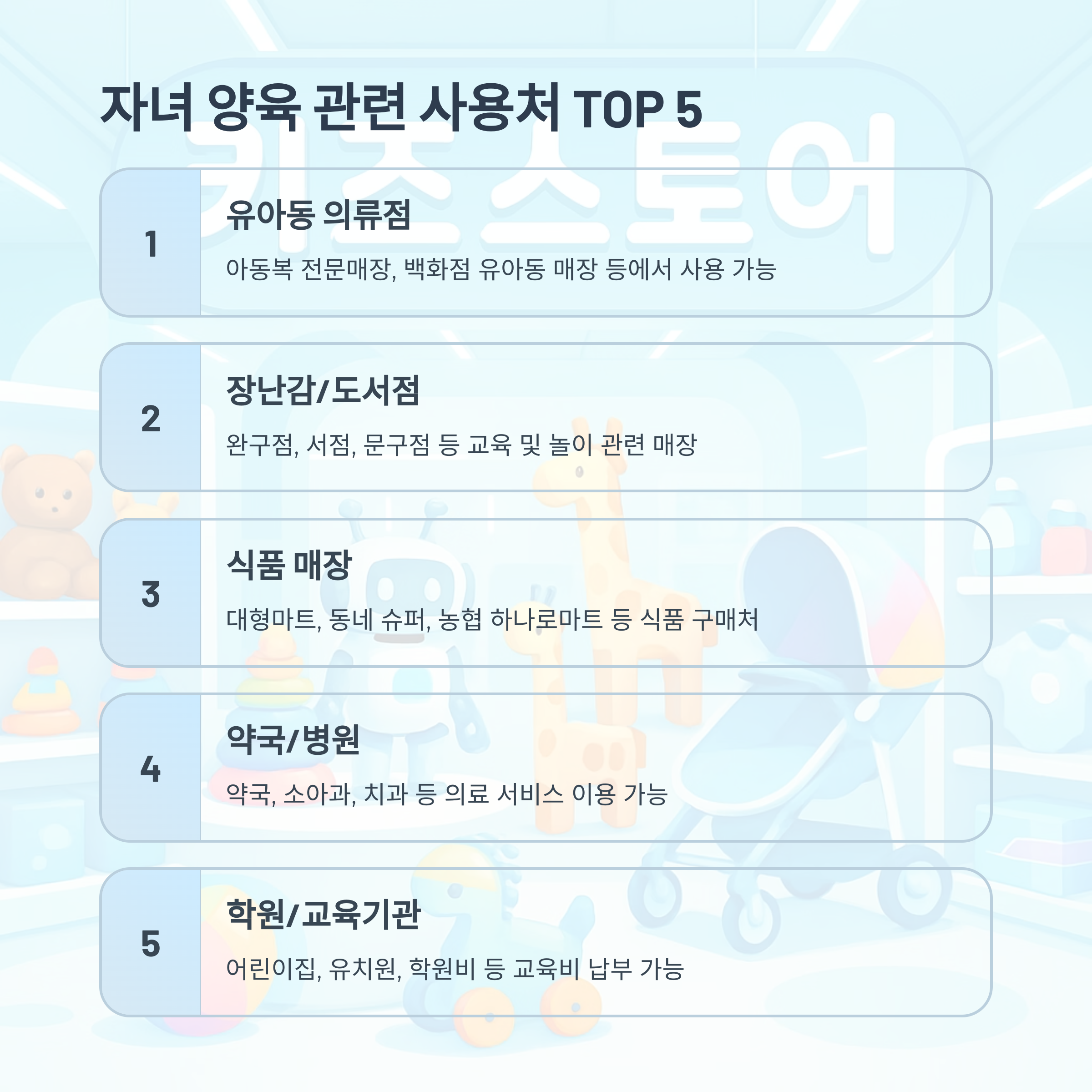 - Q4. 아이들 학원비나 병원비로도 사용할 수 있나요?