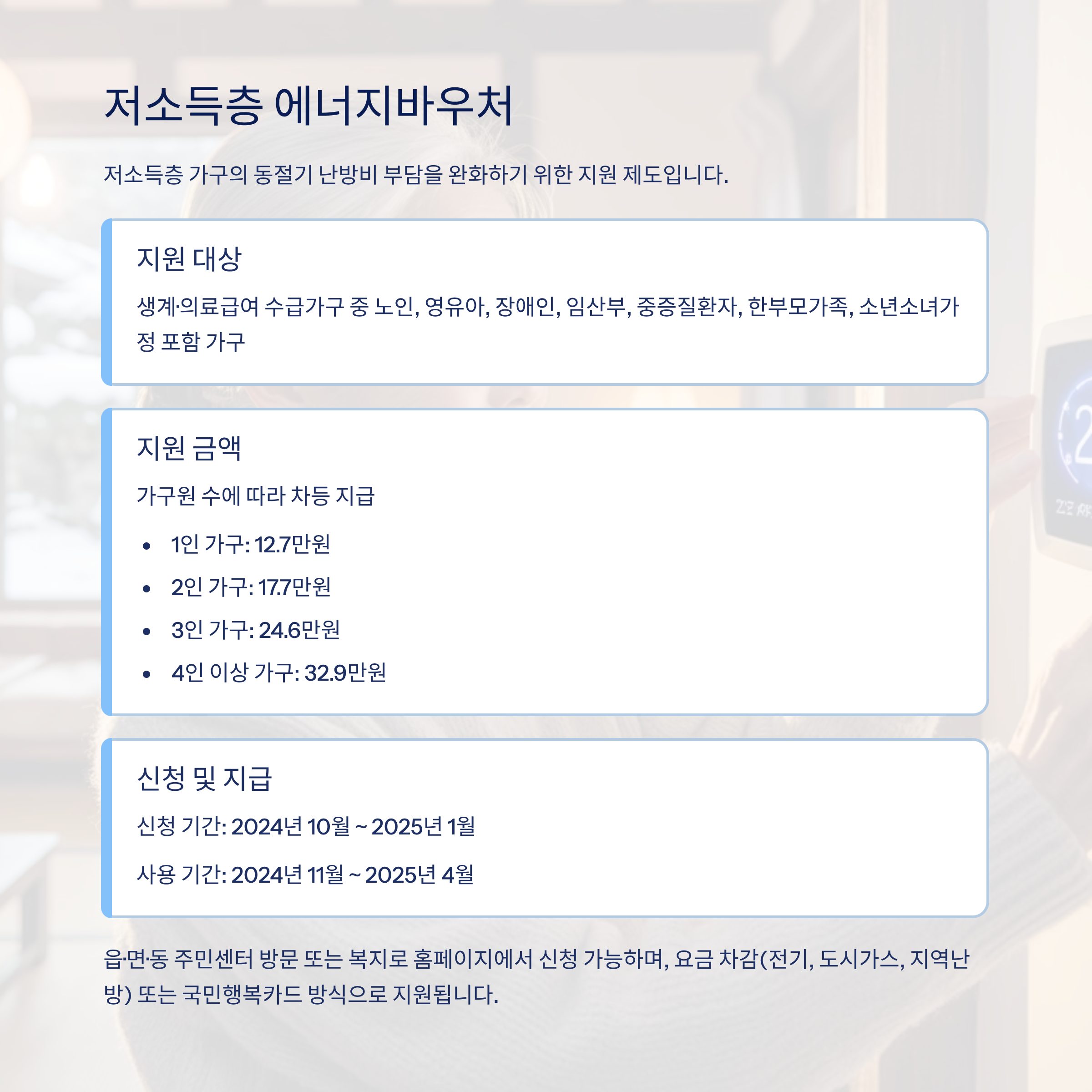 - 신청 절차: 신분증 지참 후 관할 주민센터 방문 → 신청서 작성 및 제출 → 수령