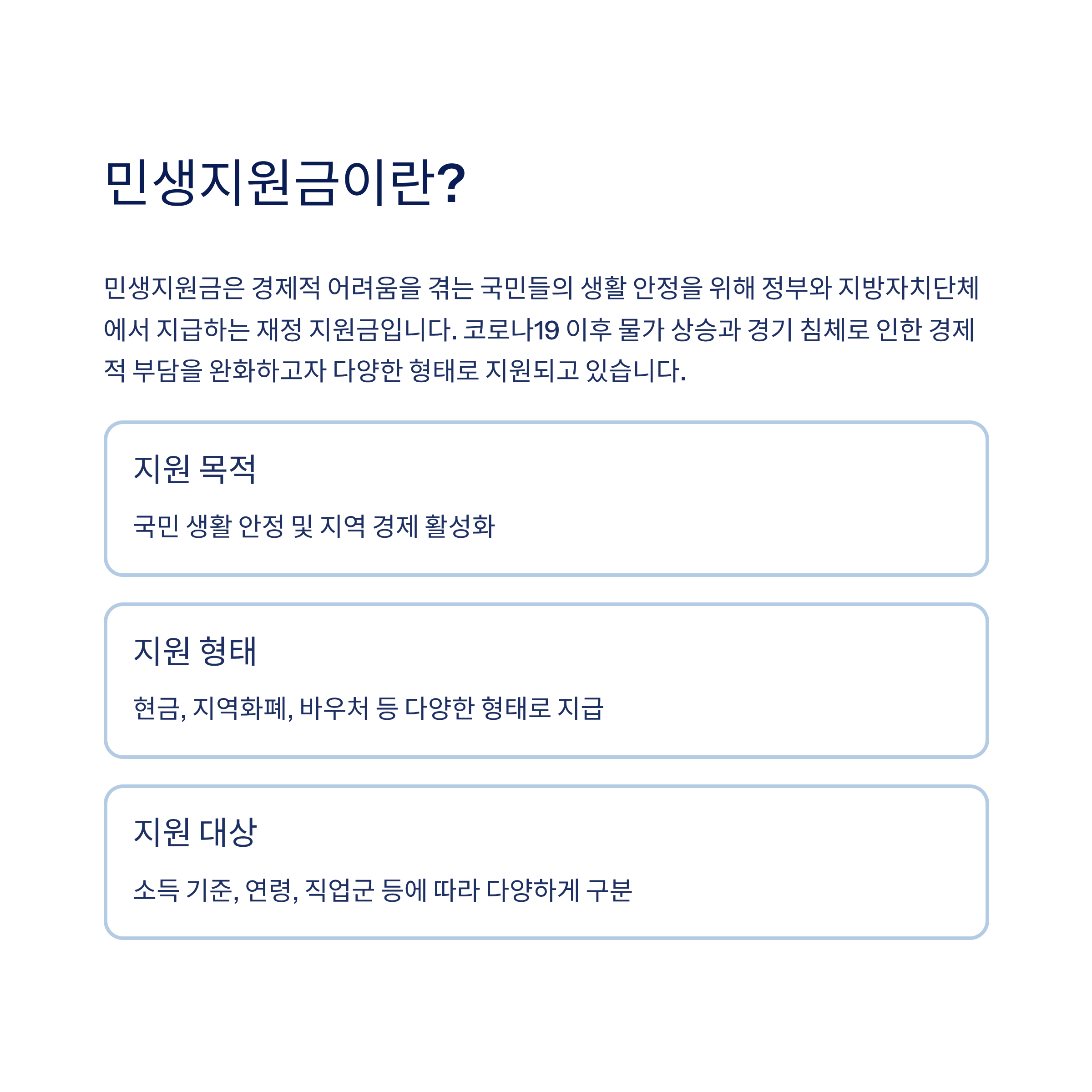 - 신청 절차: 거주 지역의 지역화폐 앱 실행 → 지원금 신청 배너 클릭 → 본인인증 및 동의 → 신청 완료