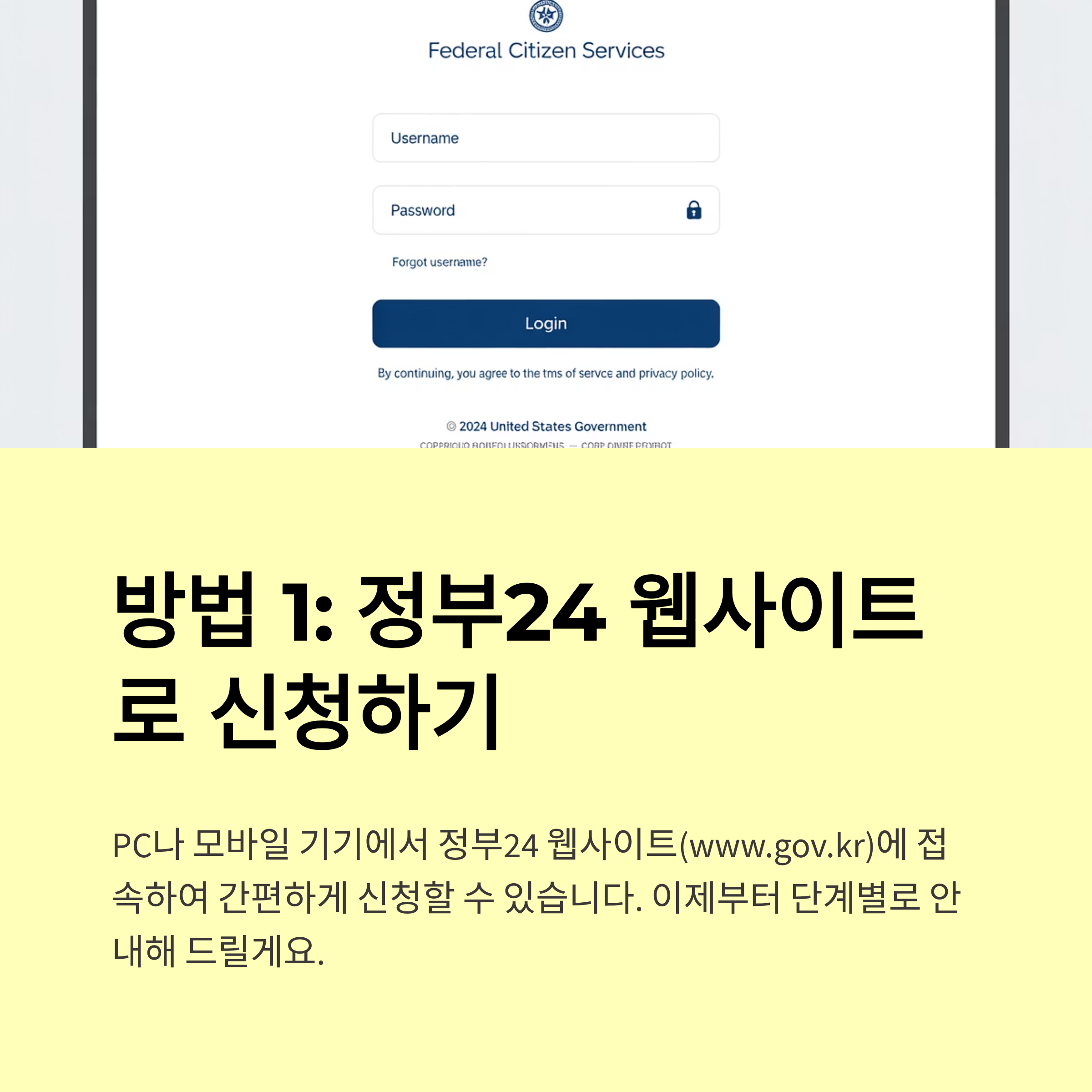 카카오톡을 선호하지 않으신다면, 네이버 앱이나 정부 공식 포털 '정부24'에서도 똑같이 신청할 수 있습니다.