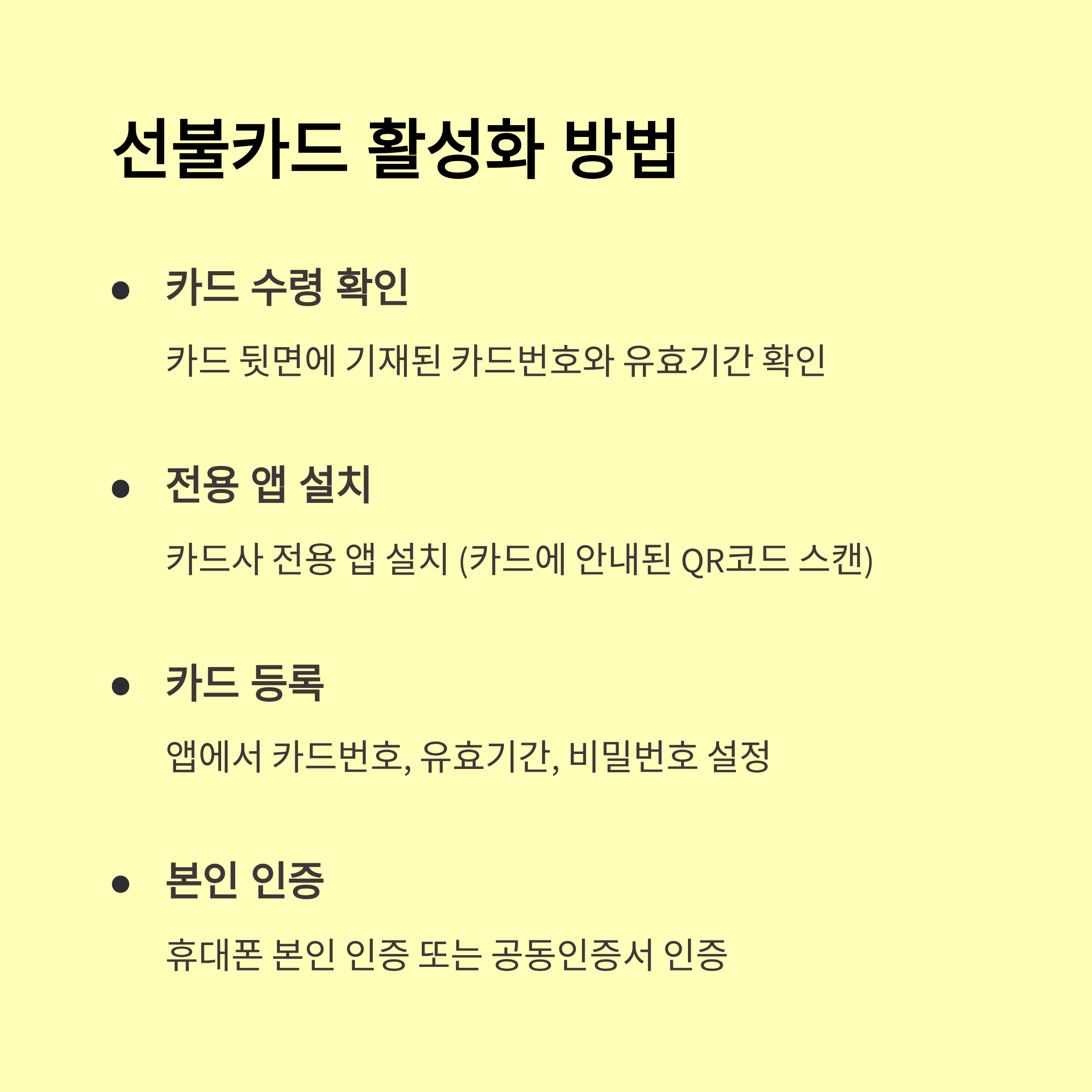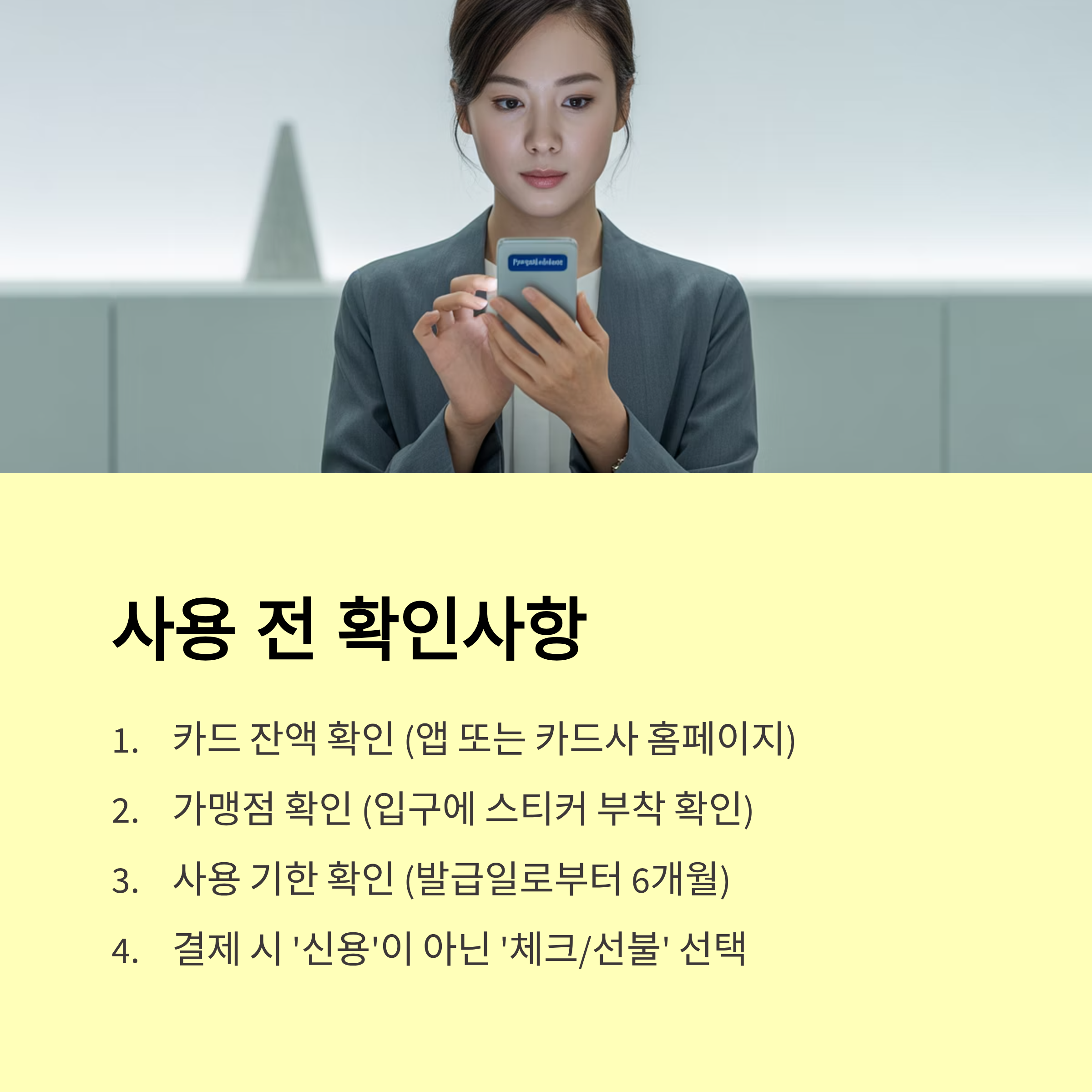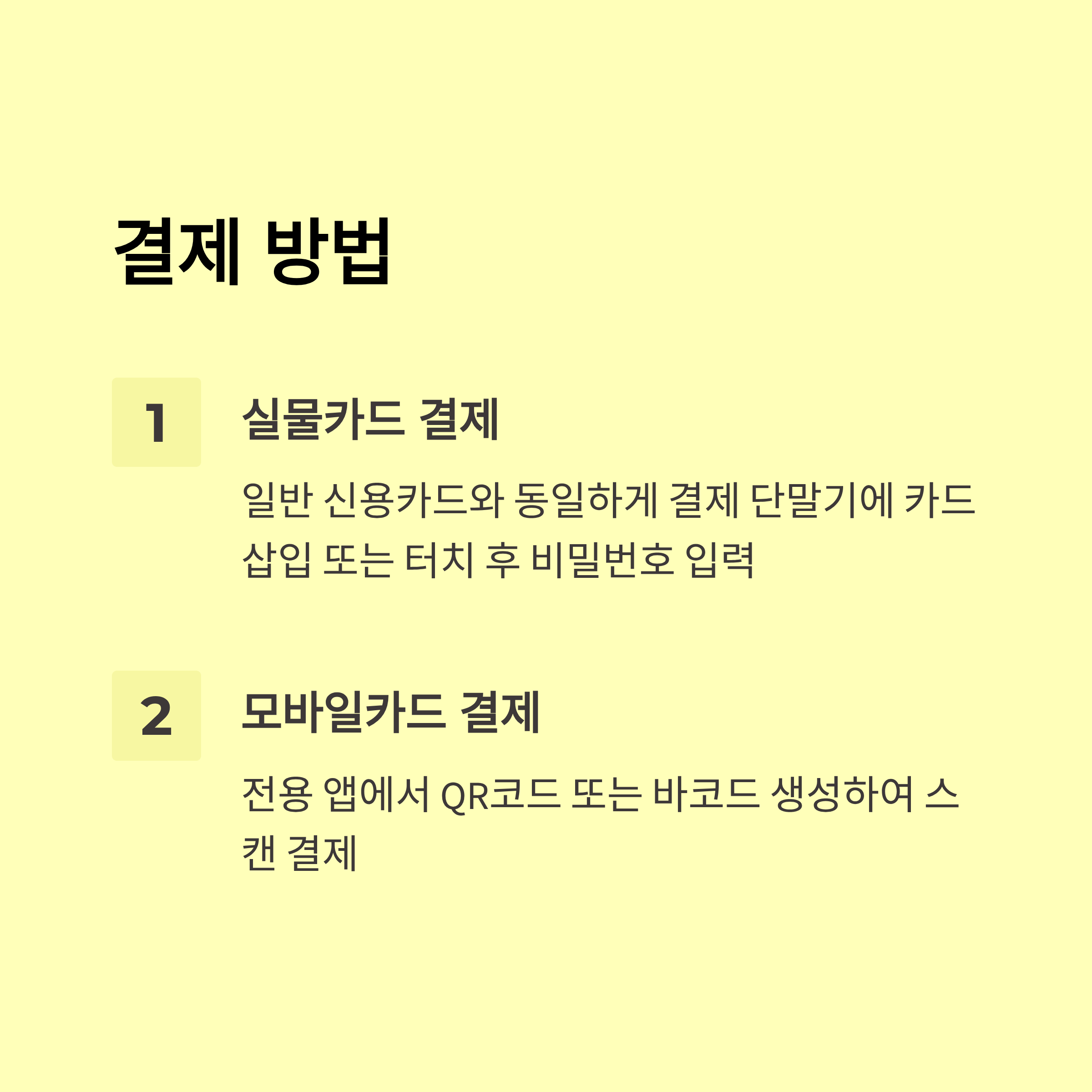 - 선불카드는 **카드사 앱에서 등록 후 사용 가능**
