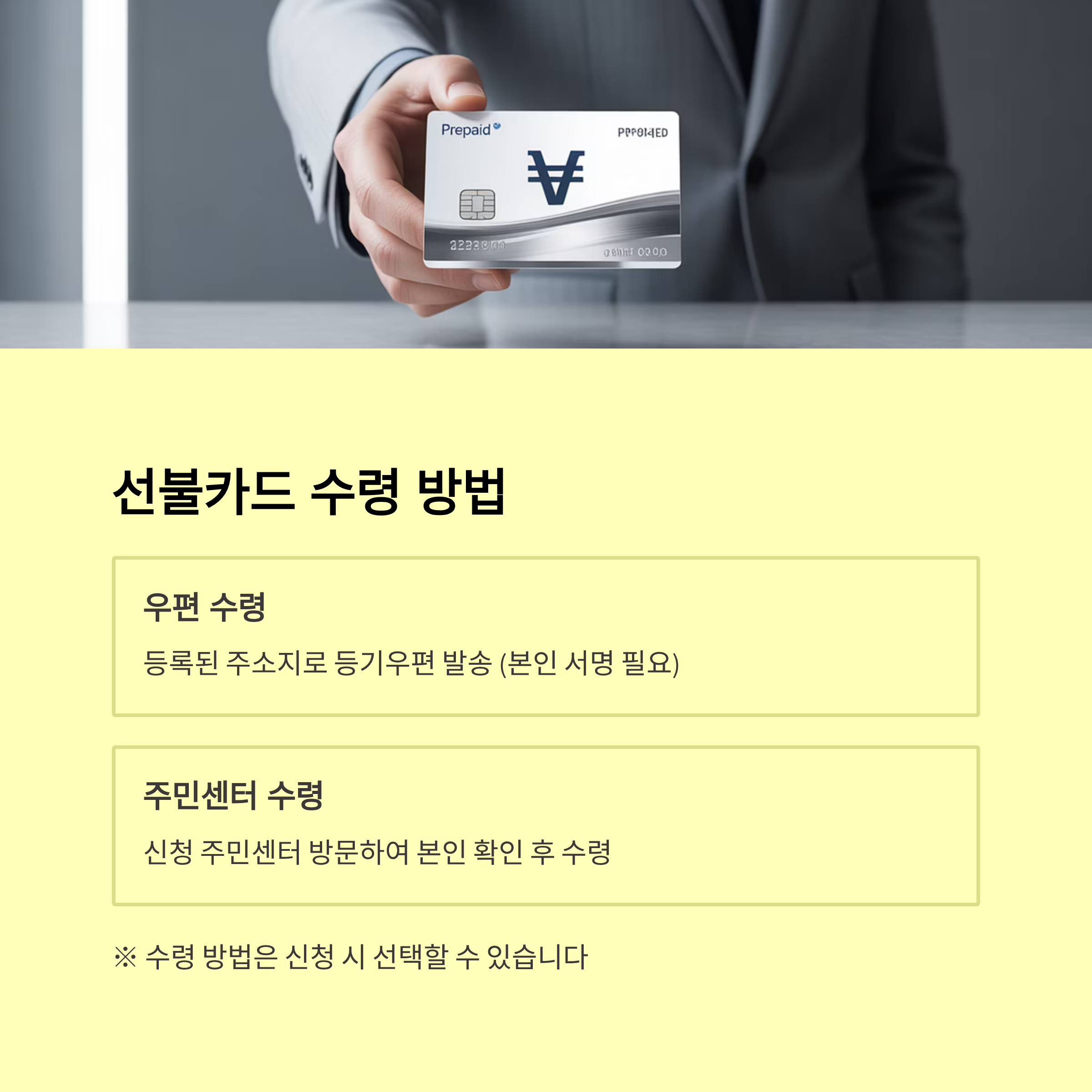 - 선불카드/계좌 정보 입력 → 신청 완료
