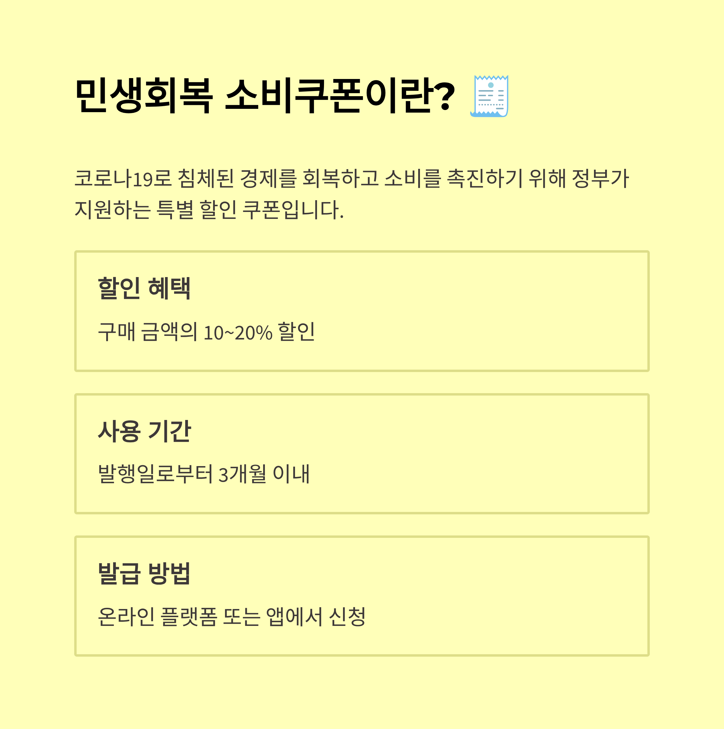 민생회복 소비쿠폰은 코로나 이후 경제 회복을 위해 정부와 지자체가 내놓은 대표적인 소비 촉진 정책이에요. 밑 빠진 독에 물 붓기처럼 소비만 늘리는 게 아니라, **지역 소상공인 매출에 실질적인 도움**을 주는 목적에요. 이게 바로 “지역 경제 활성화 + 국민 실질 소비 혜택”이라는 두 마리 토끼를 잡는 전략인 거죠.