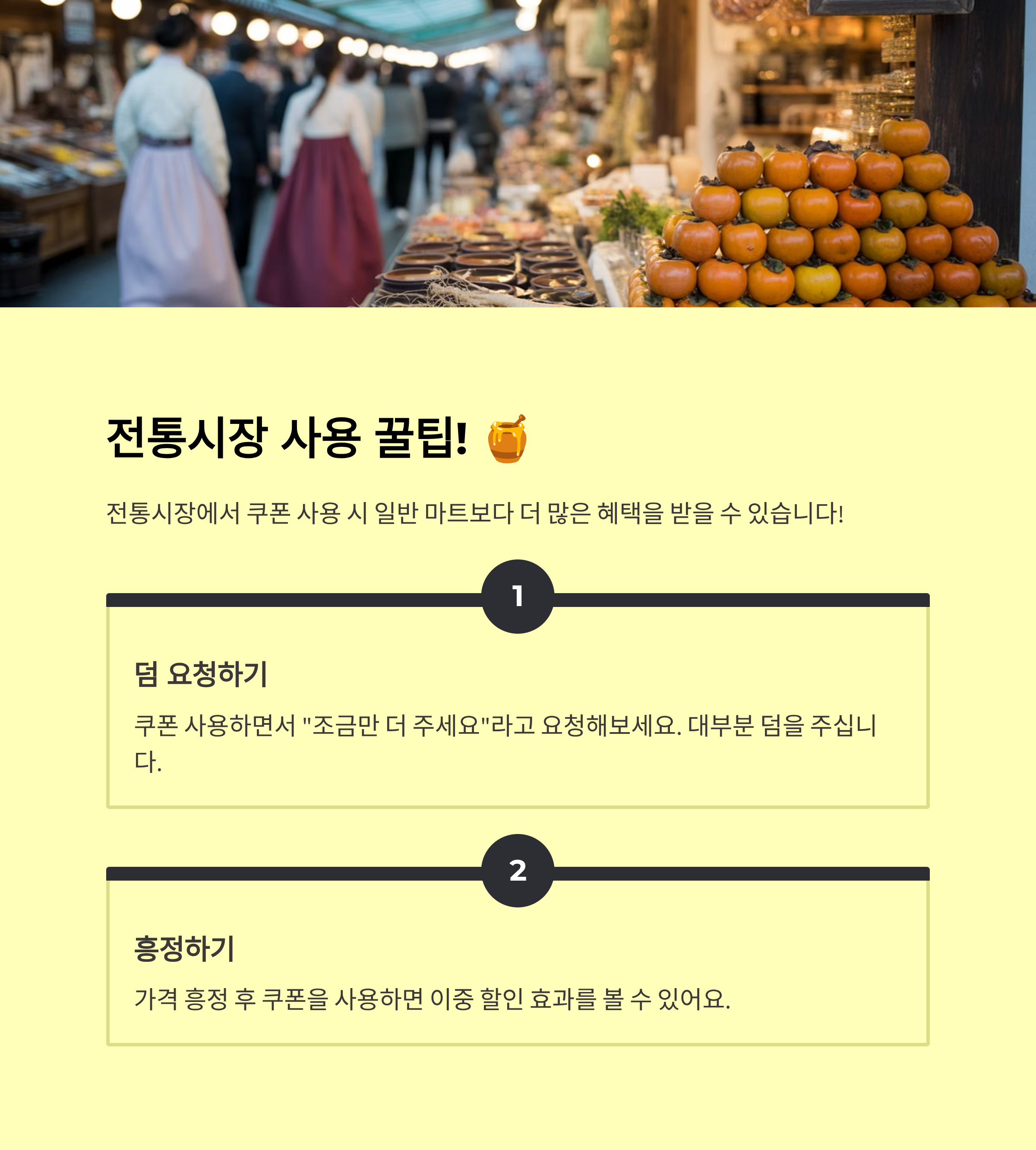 - 2) 전통시장 주말 장보기 – 시장 스탬프 카드와 중복 혜택