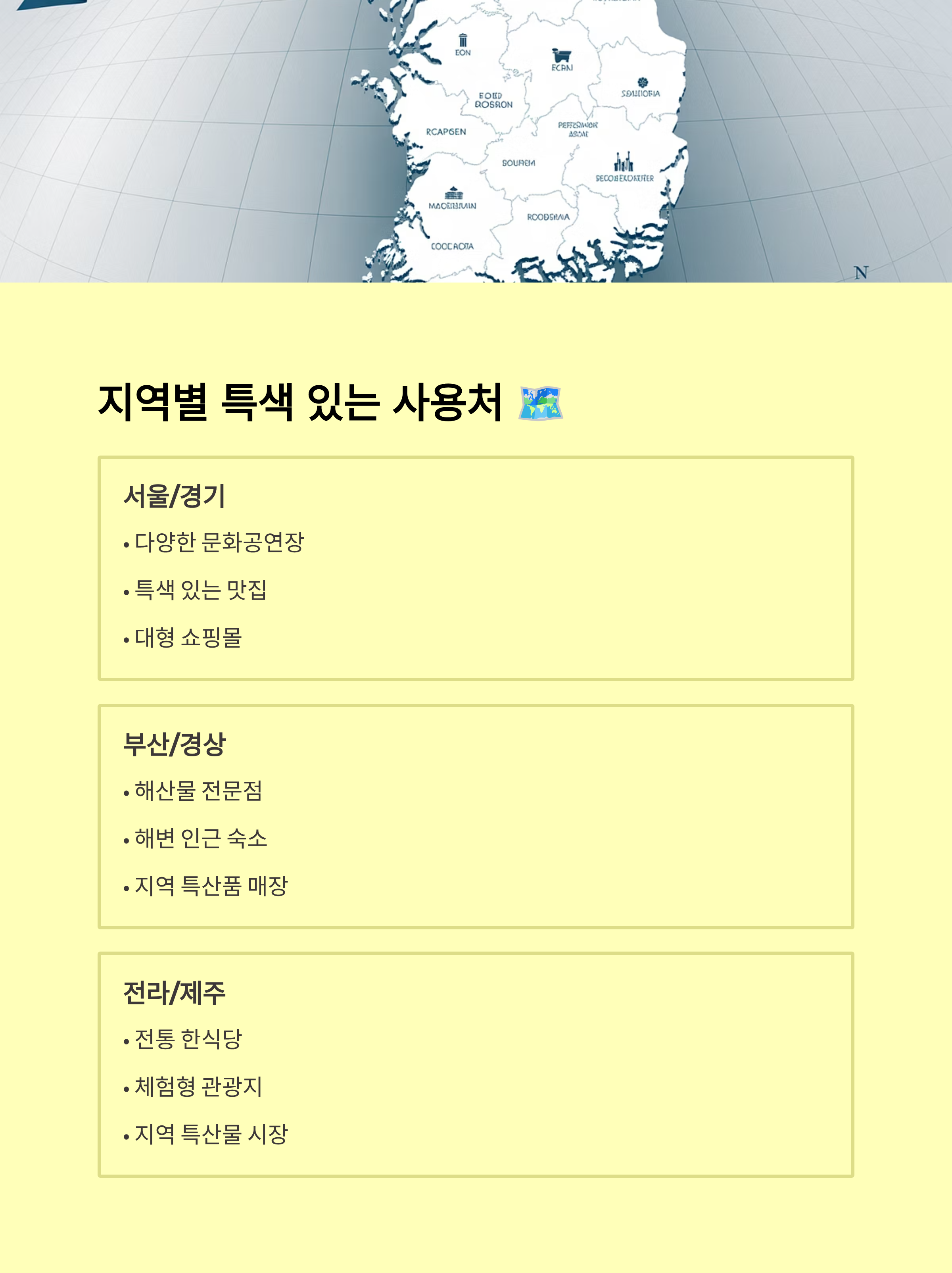 이 외에도 가족 단위로 이동하는 경우라면 대형 테마파크나 체험학습관 등에서도 **현장 결제형 쿠폰 적용이 가능한지 미리 체크**해보세요. 요즘은 지역 축제에서 현장 할인+소비쿠폰 적용이 같이 되는 경우도 많답니다.