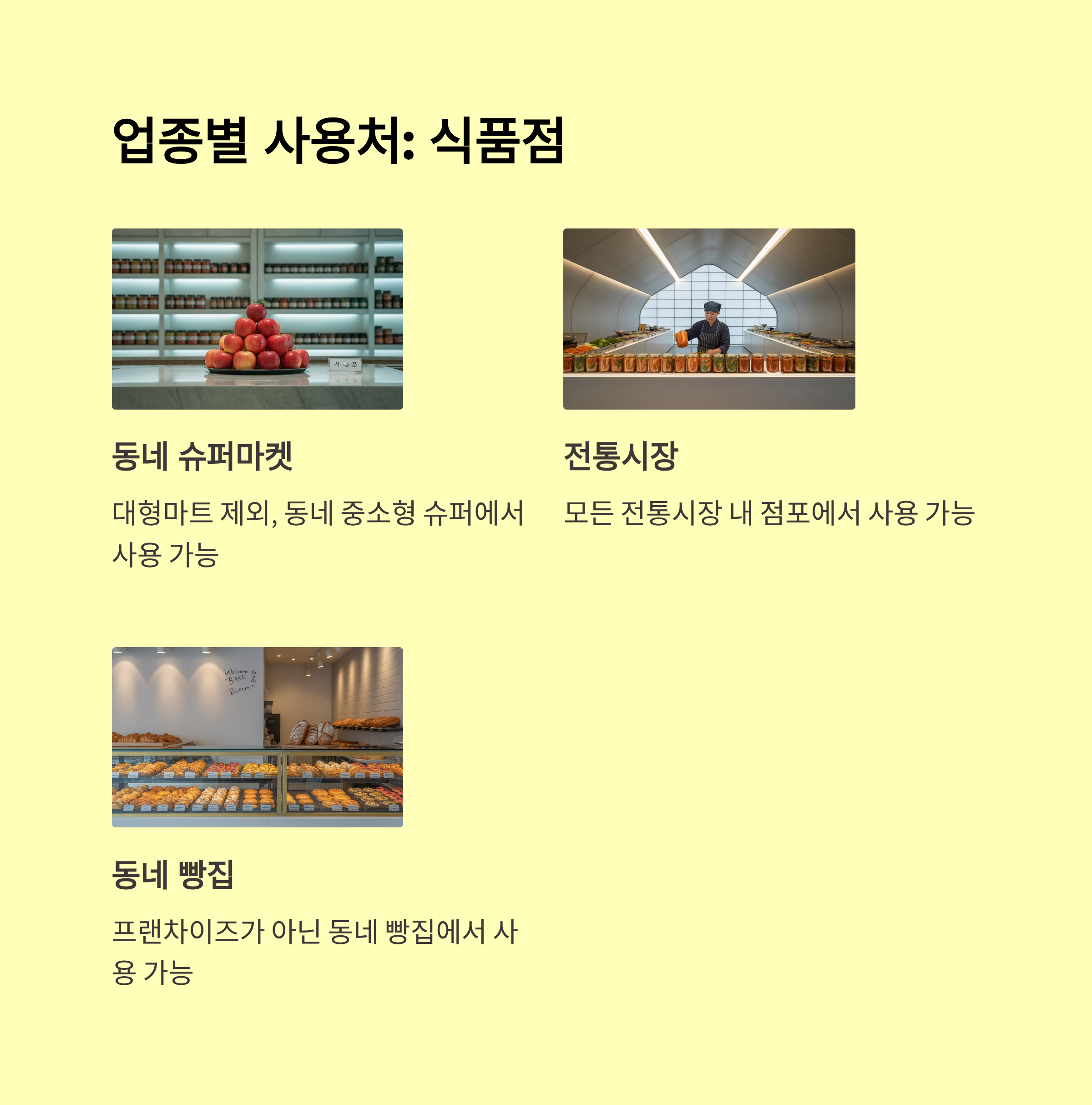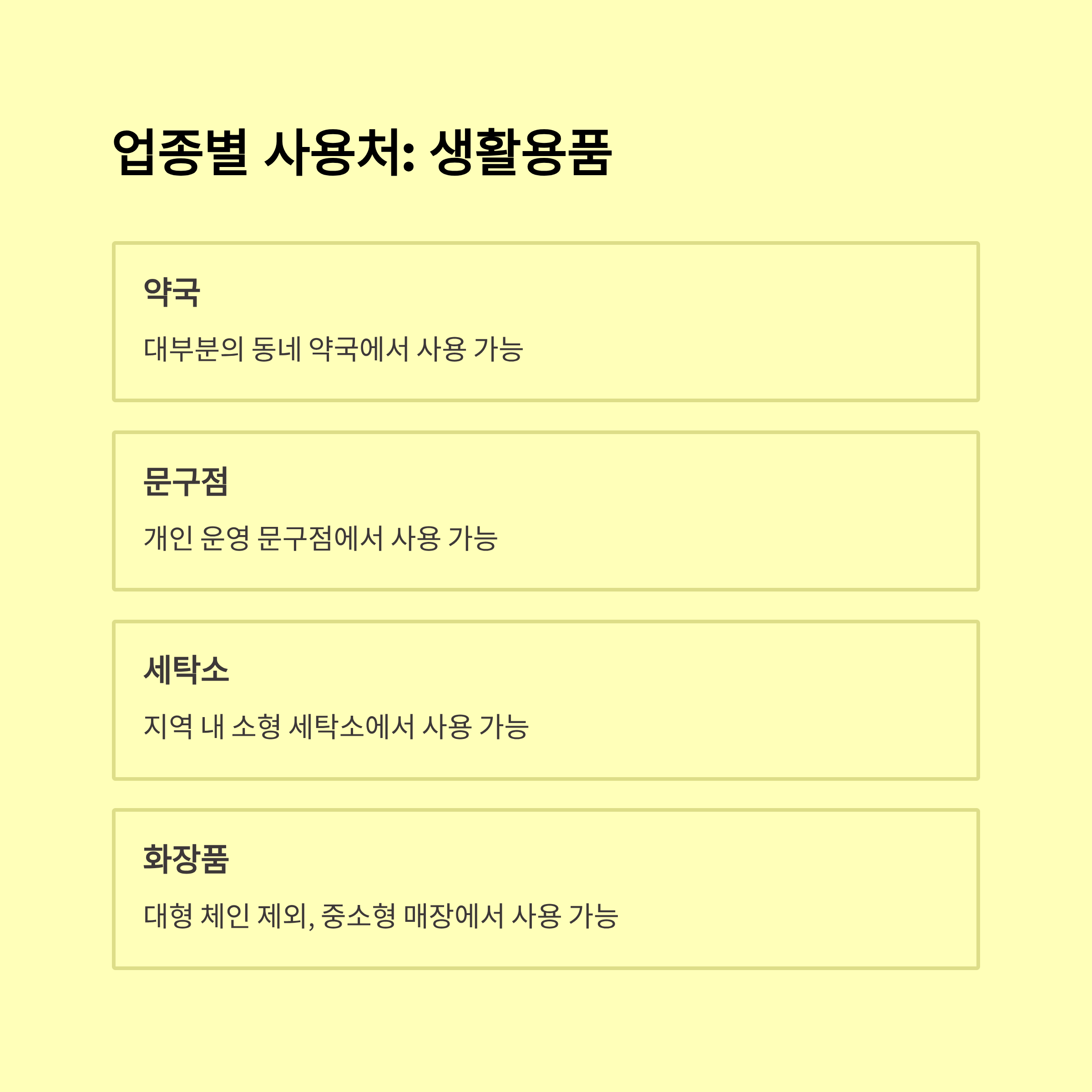 대부분 전통시장, 동네마트, 미용실, 병원, 약국, 학원, 음식점 등 생활 밀접형 업종에서 자유롭게 쓸 수 있어요. 특히 전통시장과 중소상인 가게에서는 환영 분위기가 많답니다.
