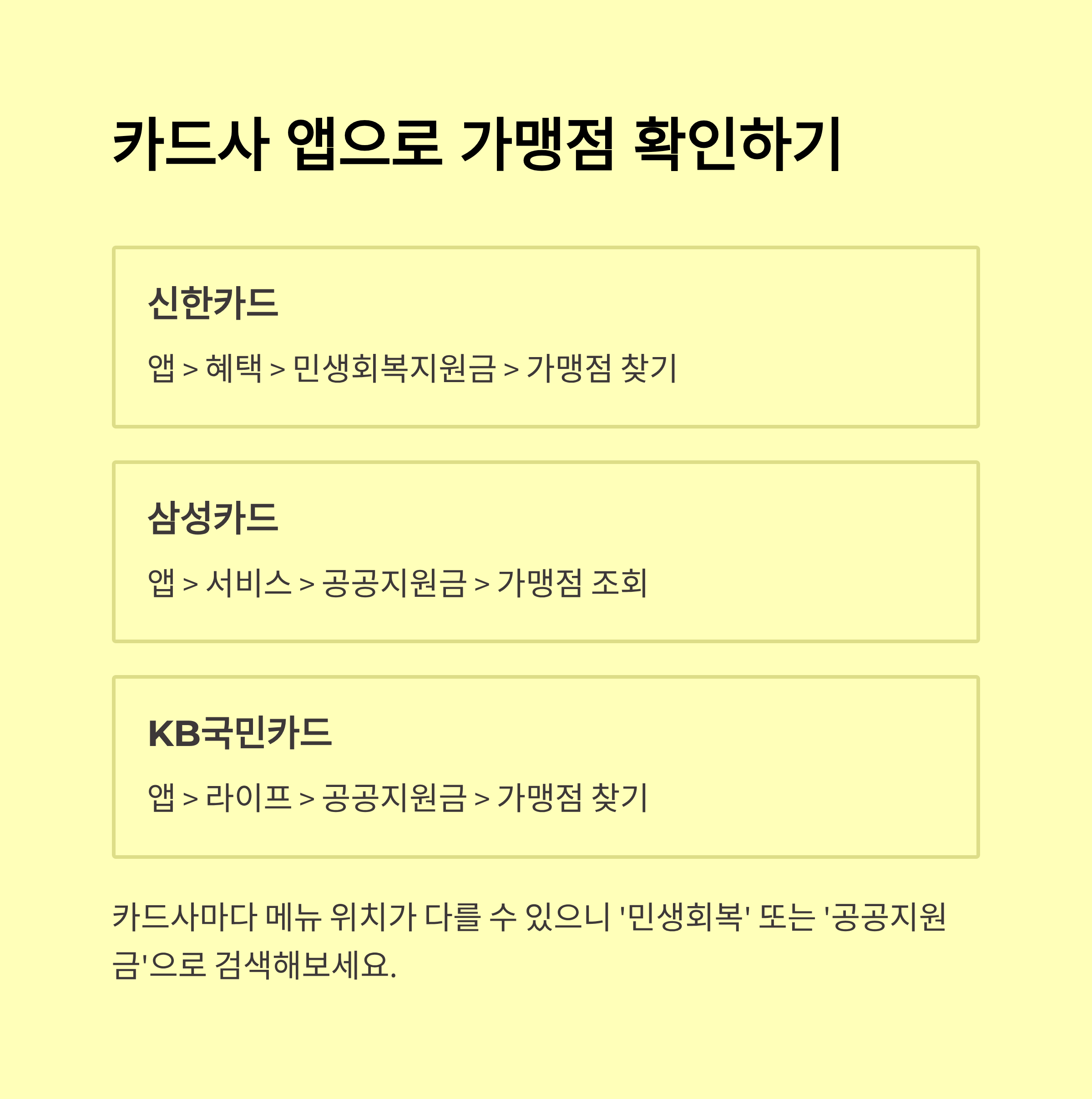 사용하기 전에 매장이 ‘지원금 사용 가능’ 스티커를 붙여놓았는지 확인하거나, 앱에서 가맹점 여부 확인하면 더 확실해요!