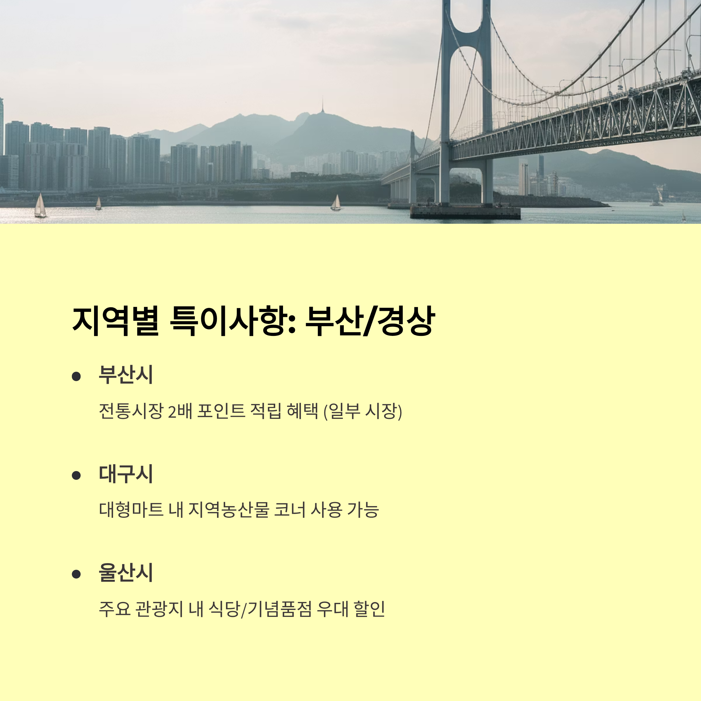 전통시장 장보기, 단골 식당, 동네 세탁소처럼 꾸준히 가는 곳 위주로 사용하면 자연스럽게 소진되면서 혜택도 극대화할 수 있어요.