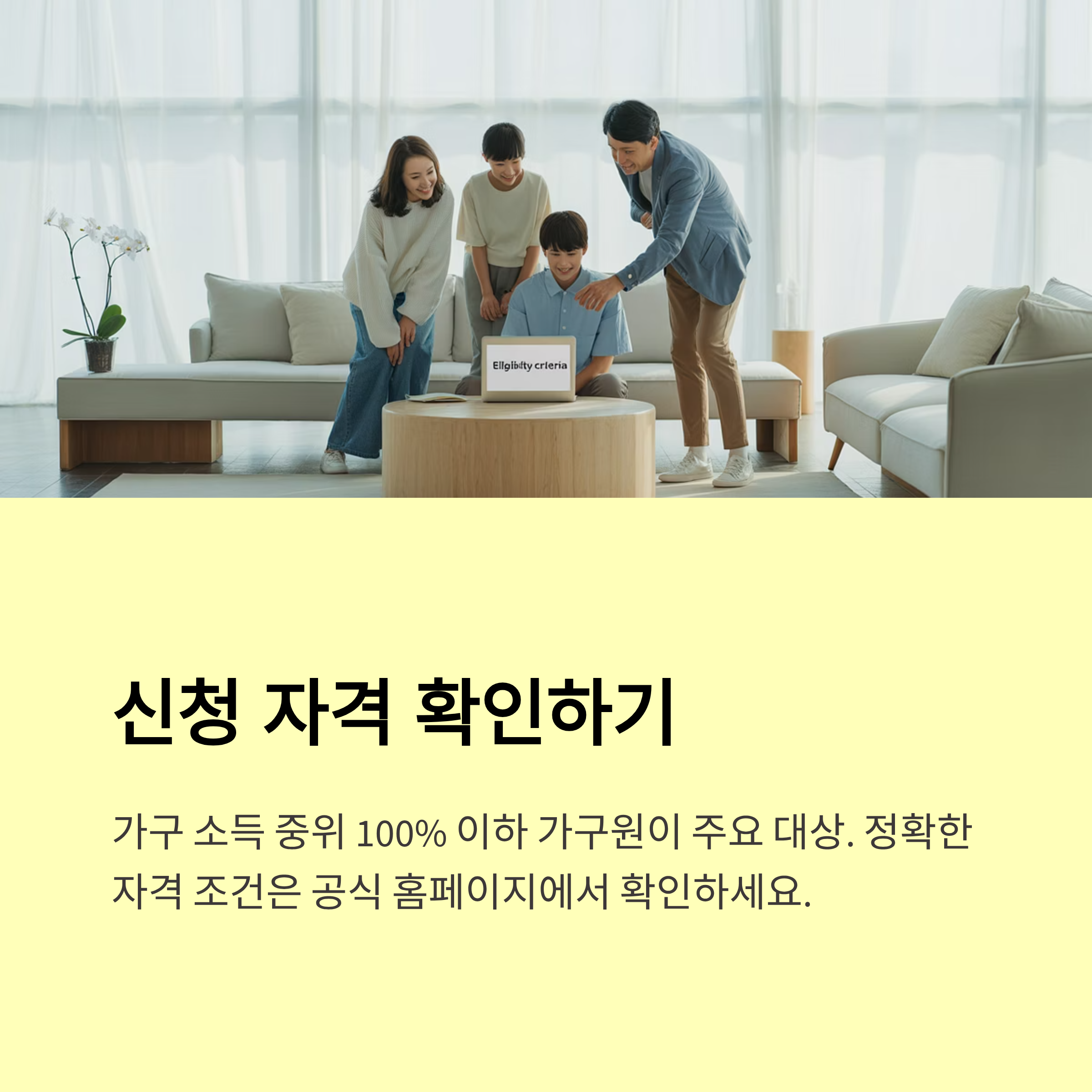 - 가족도 함께 활용하세요! 부모님, 배우자, 자녀 등도 신청할 수 있어요. 한 집에 여러 명이 받을 수 있죠.