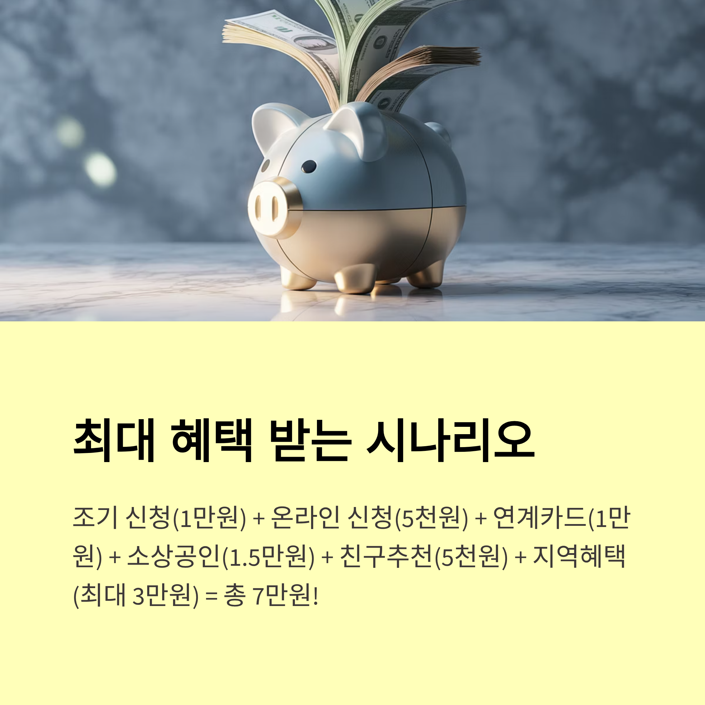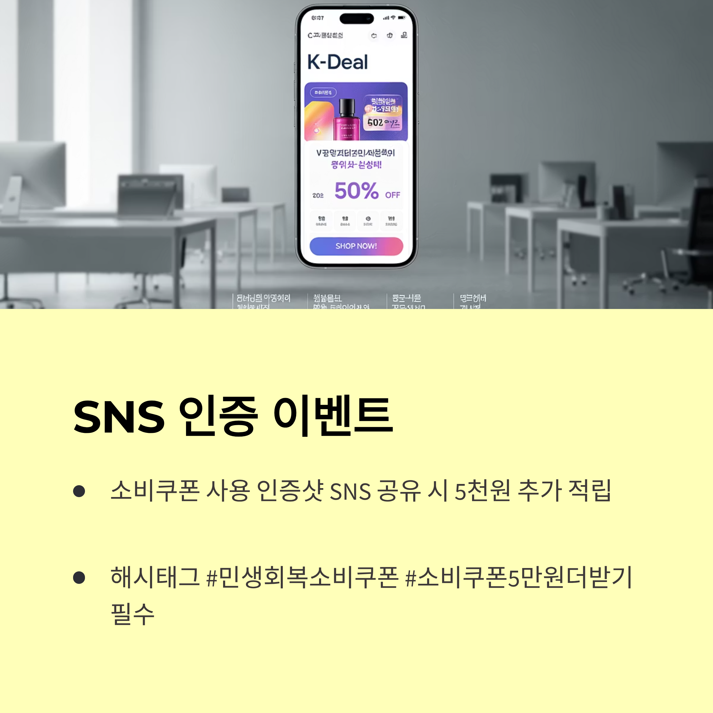 이번 민생회복 소비쿠폰에는 카드사들의 자체 이벤트가 더해져, 최대 5만 원의 추가 혜택을 받을 수 있는 기회가 주어져요.
