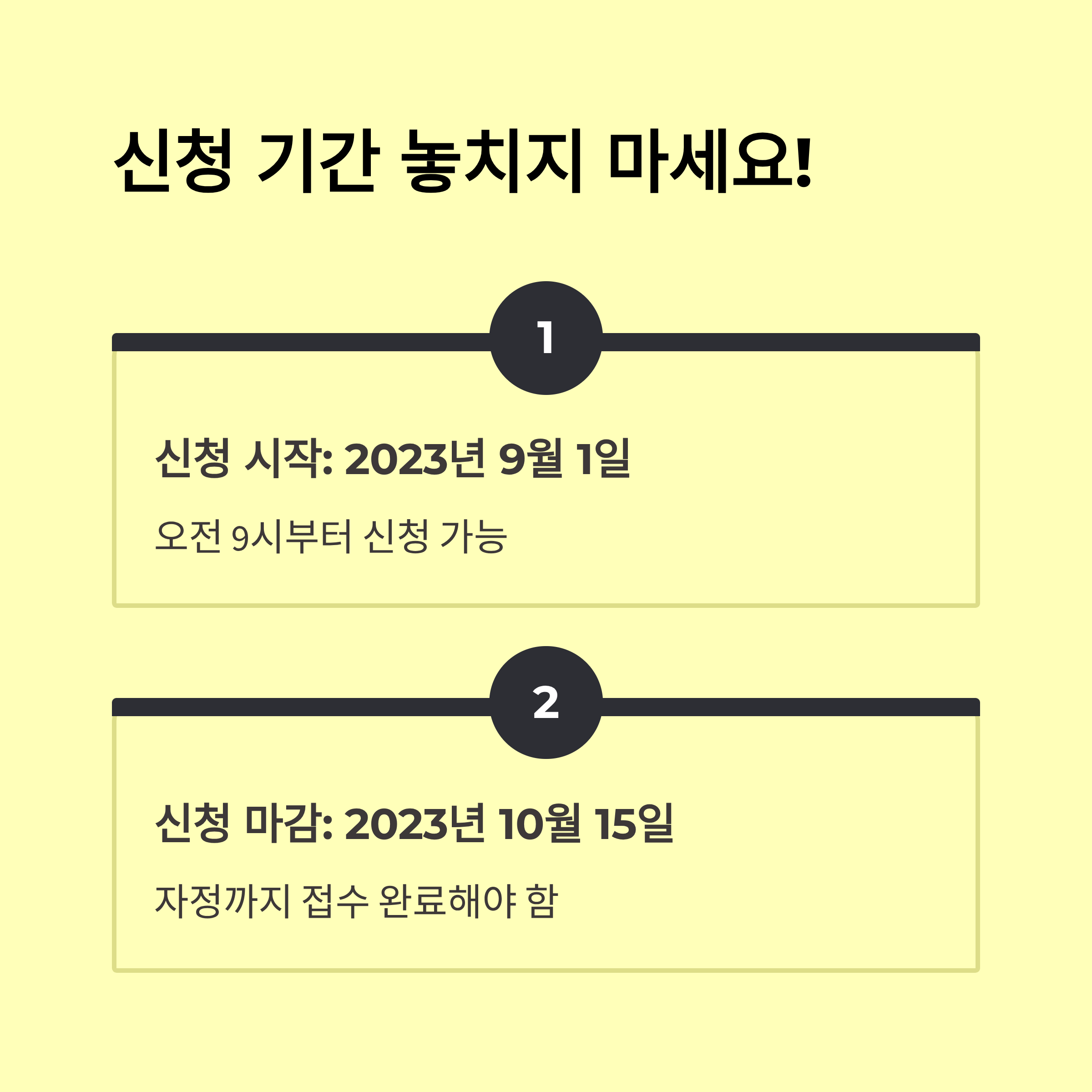 다만, 마감일인 9월 12일 이후에는 접수가 불가하므로 늦지 않게 신청하시는 것이 중요해요.