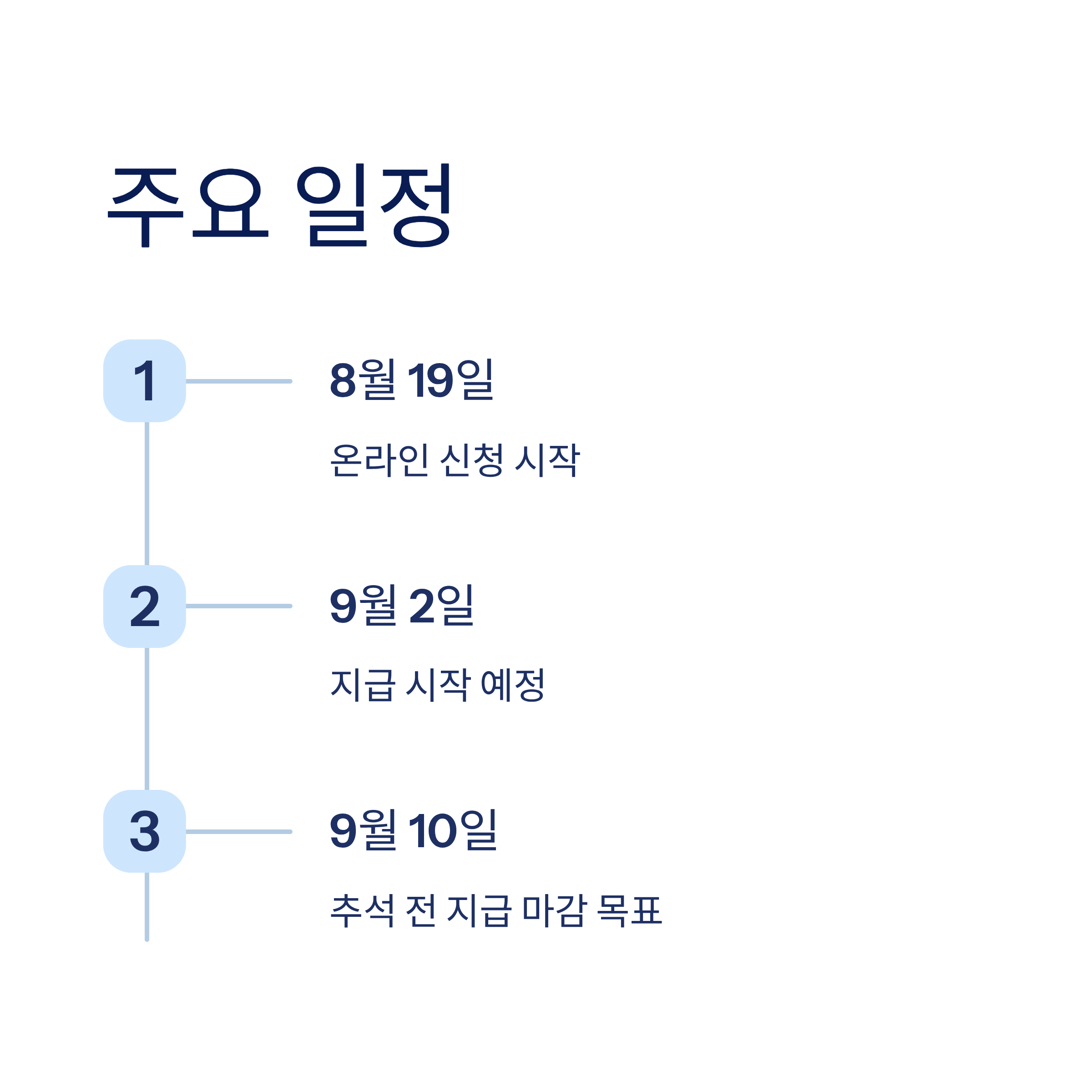 | 9월 10일 | 추석 전 지급 마감 목표 |