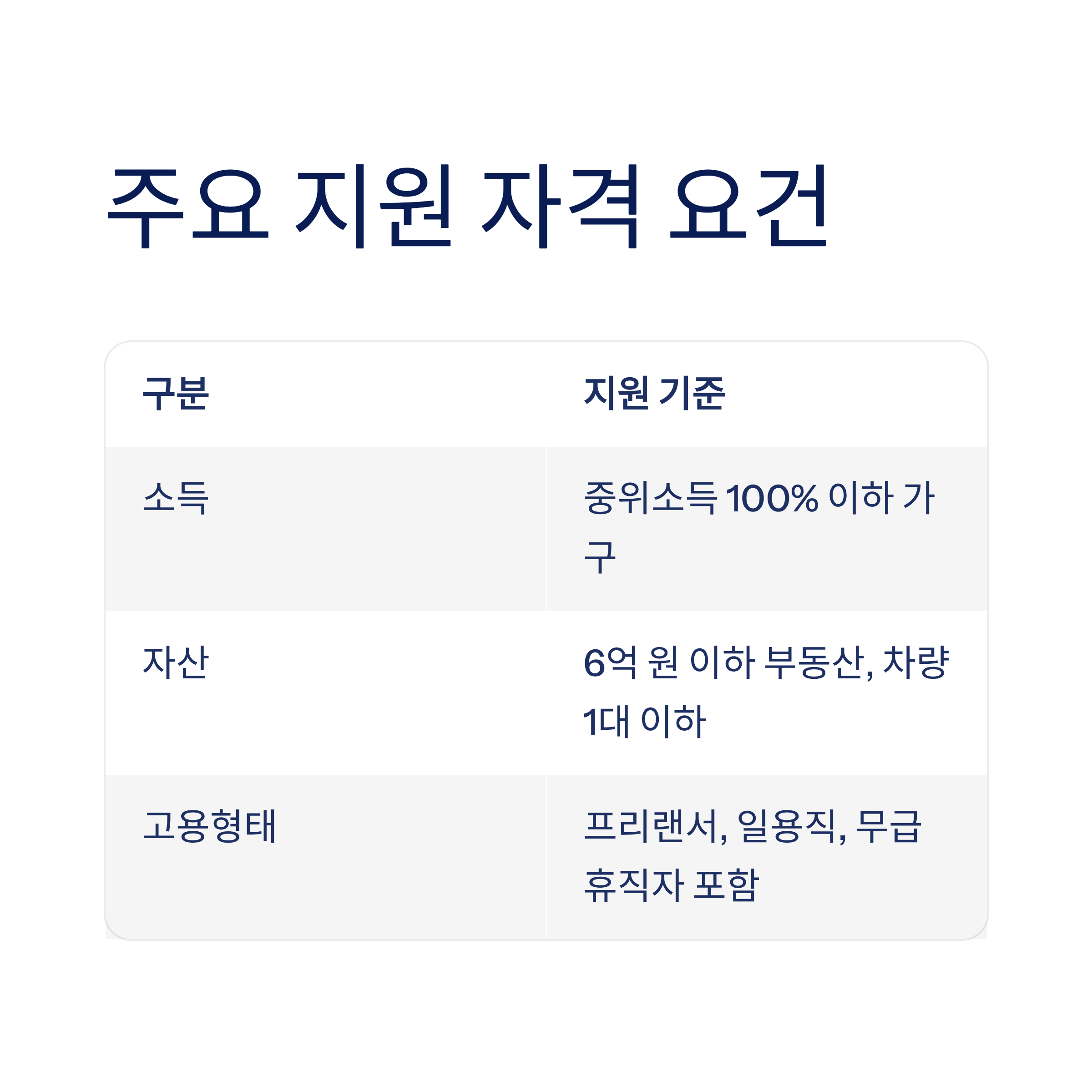 | 고용형태 | 프리랜서, 일용직, 무급휴직자 포함 |
