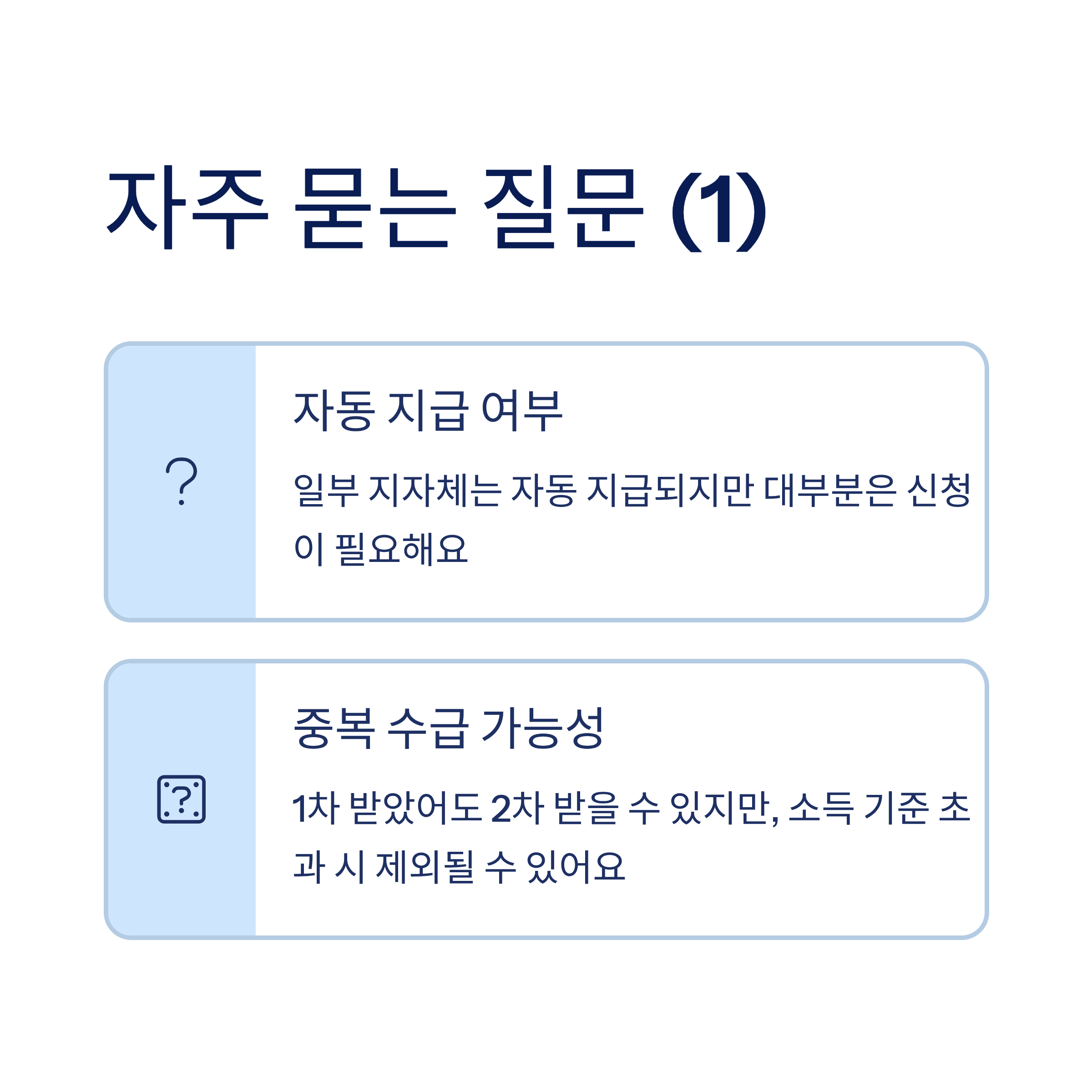 A1. 일부 지자체는 자동 지급되지만 대부분은 신청이 필요해요. 주민등록 주소지 기준 확인이 필수랍니다.