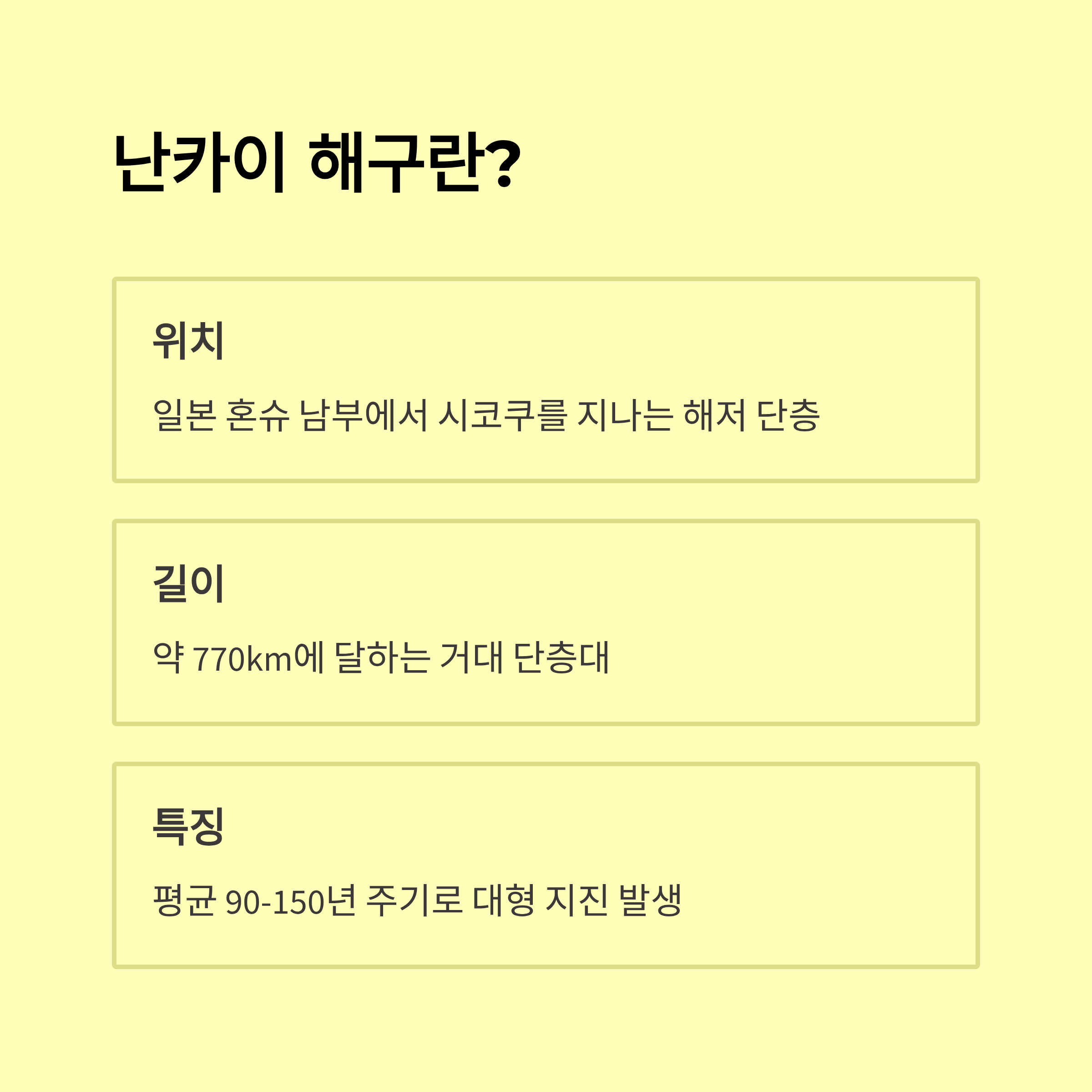A1. 유라시아판과 태평양판이 충돌하는 지역으로, 지각 에너지가 축적돼 대형 지진이 발생한 거예요.