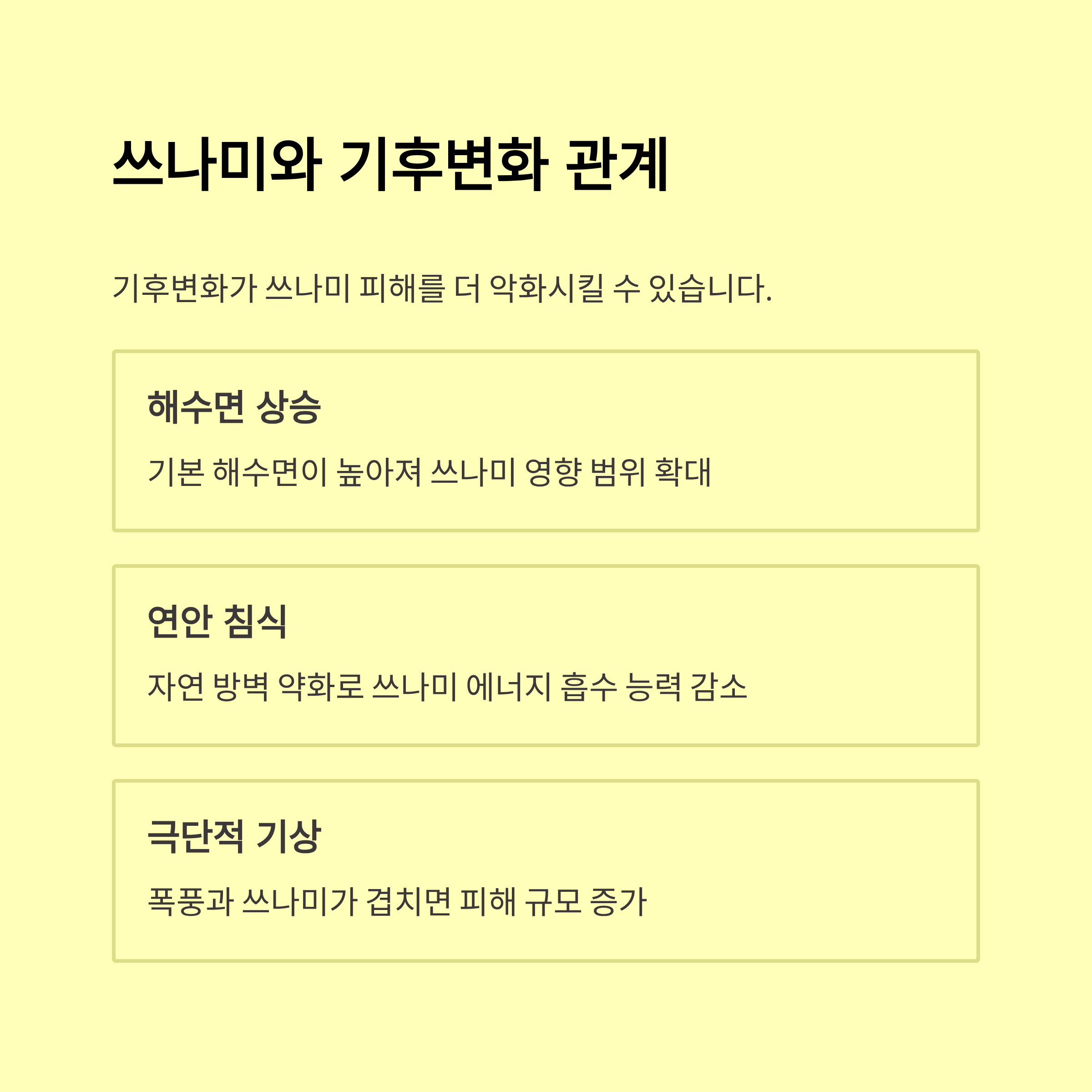 쓰나미는 파도처럼 보이지만 엄청난 에너지를 가진 이동체로, 해안에 도달할 때 파괴력을 발휘해요. 따라서 작더라도 주의가 필요하답니다.