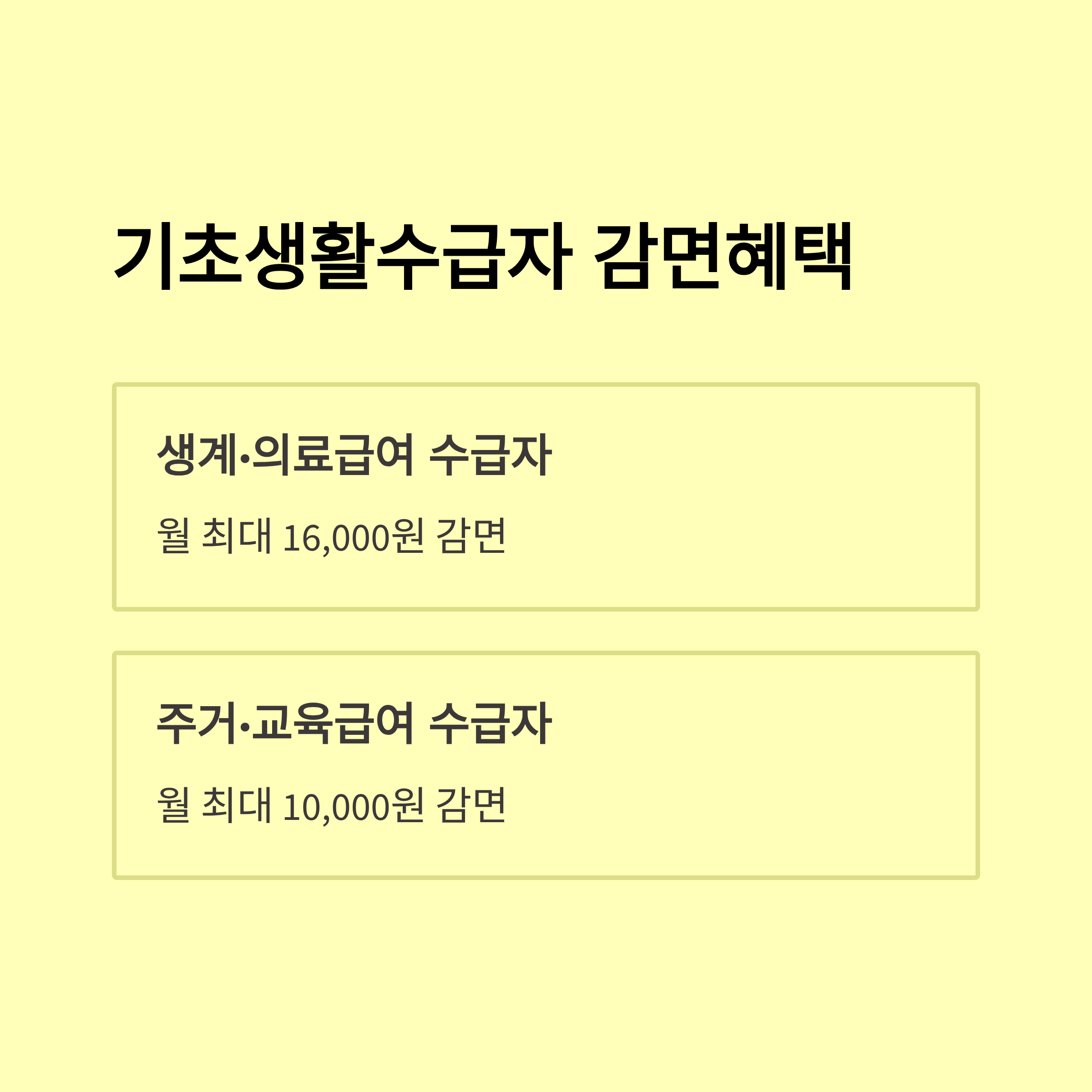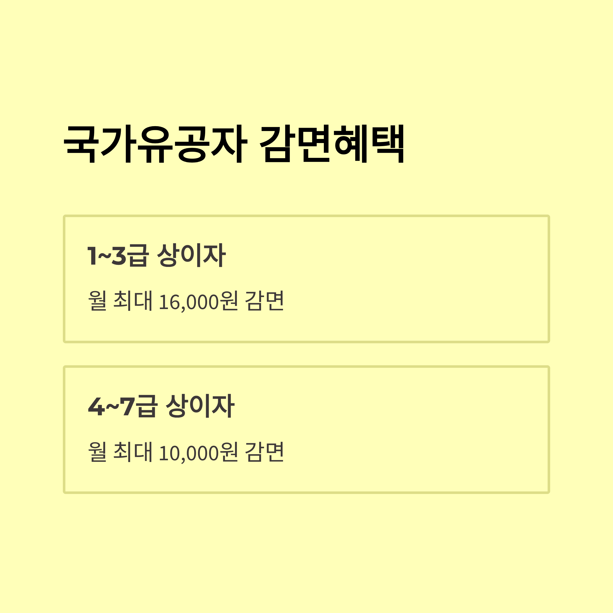 | 장애인/국가유공자 | 최대 16,000원까지 감면 |