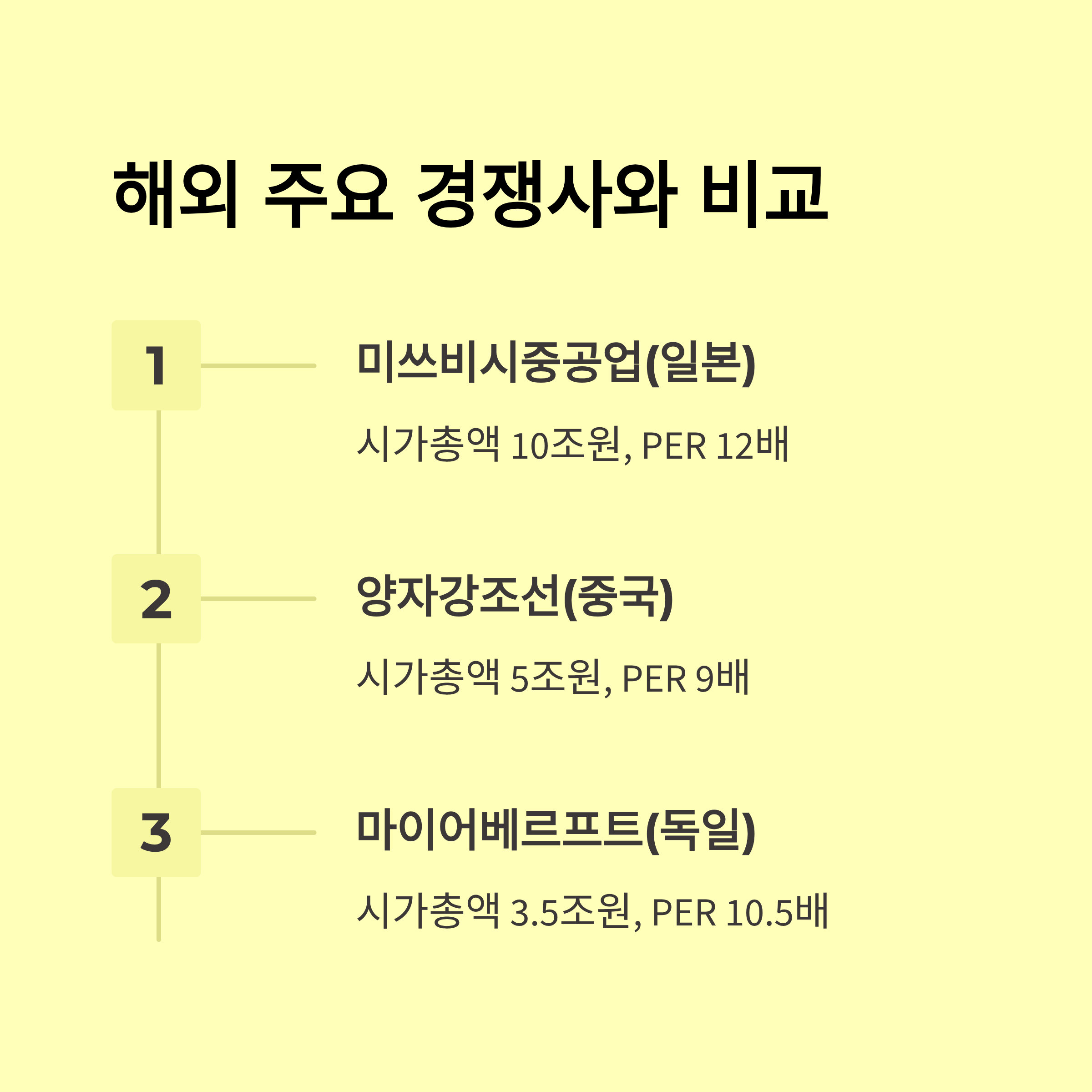 두 번째는 선박 인도 지연과 환율 리스크예요. 조선 산업 특성상 고객사와 계약 후 실제 인도까지 1~2년이 소요되는데, 그 사이 환율이 급변하면 채산성에 타격을 받을 수 있어요.