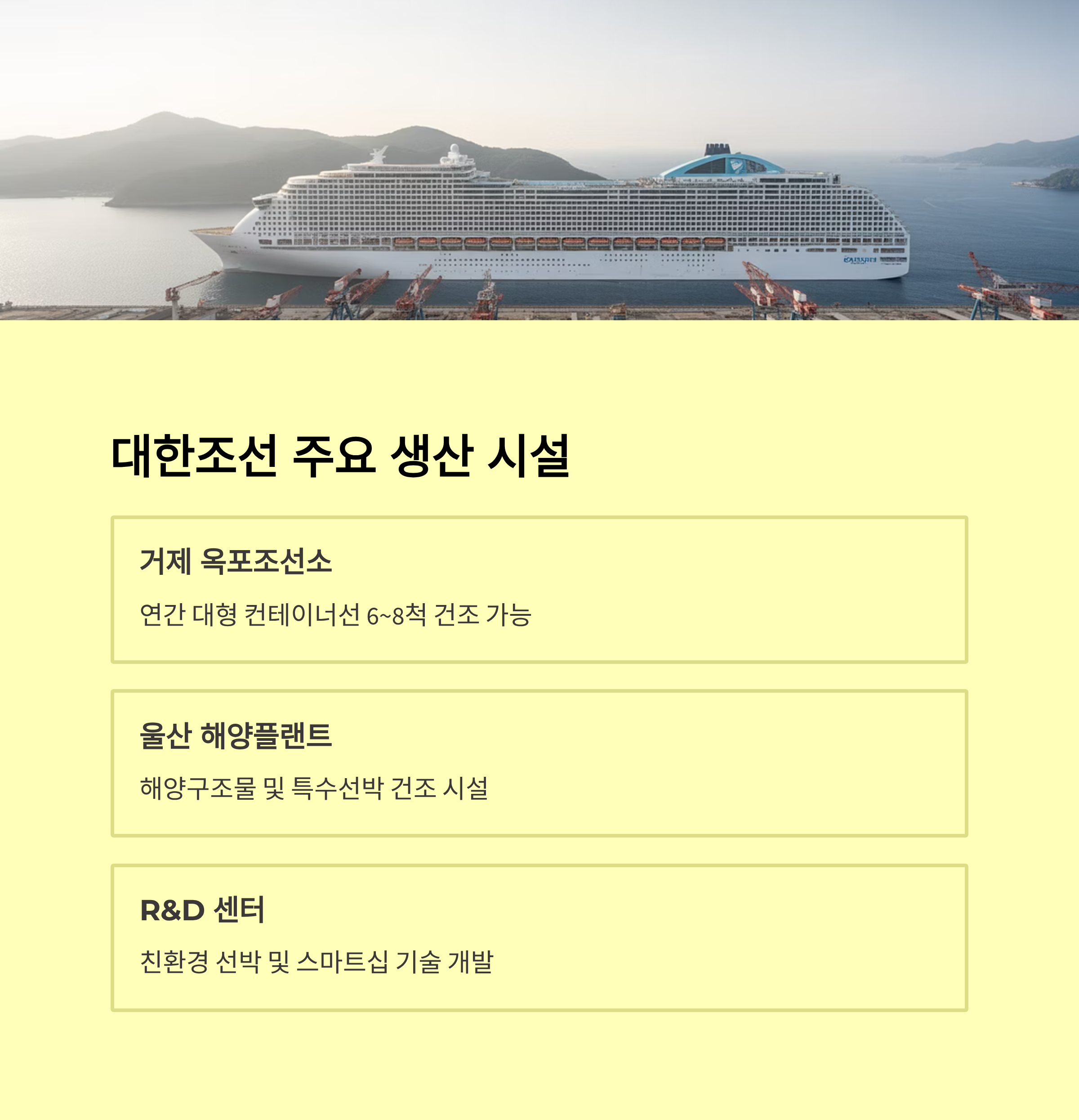 대한조선은 국내 조선업계에서 중형 선박 중심으로 두각을 나타내는 기업이에요. 본사는 전라남도 해남에 위치해 있으며, 오랜 기간 동안 탱커, 벌크선, 컨테이너선 등 다양한 선박을 건조해왔죠.