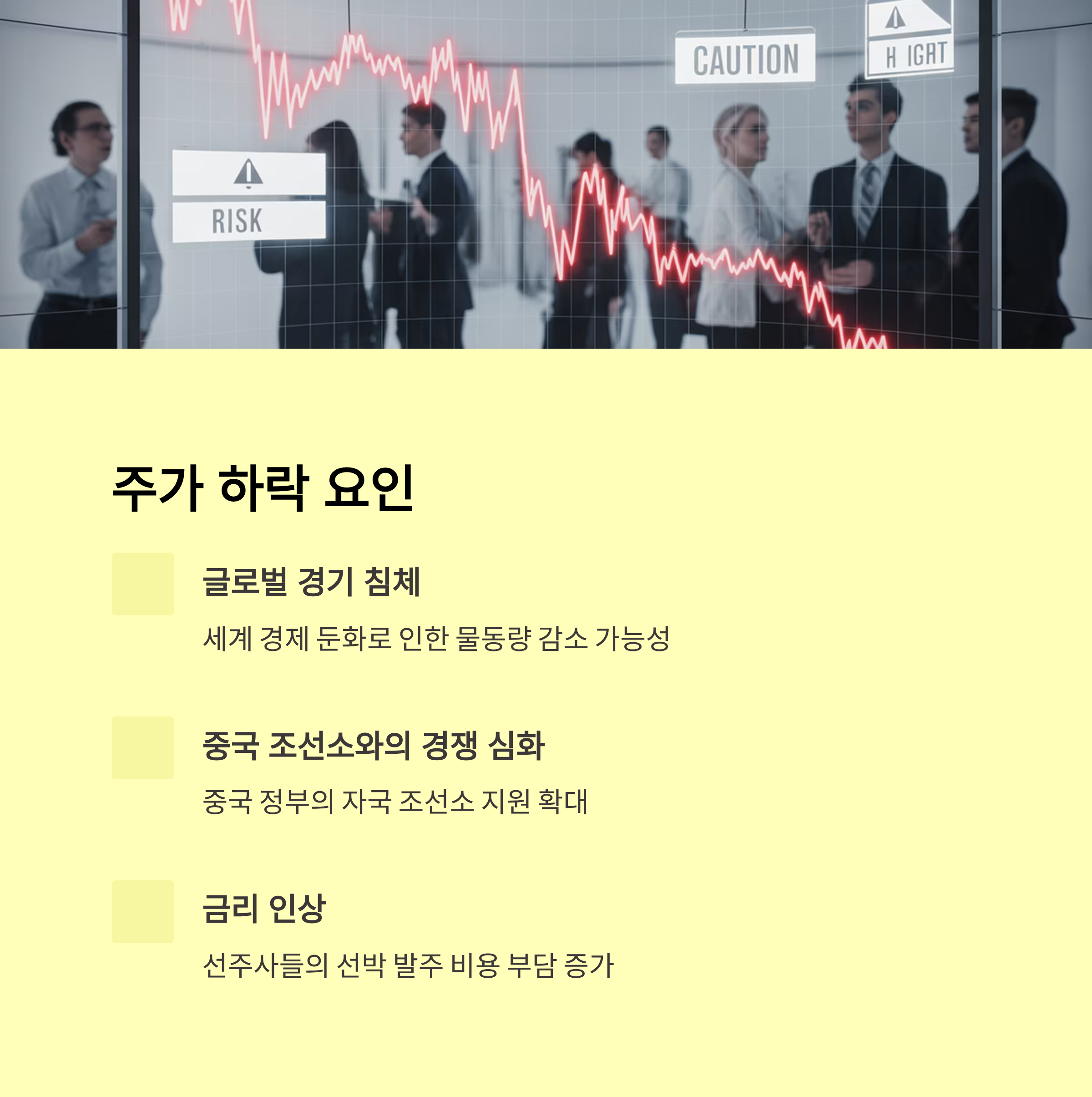 A5. 원자재 가격, 환율 변동, 선박 발주 감소 등이 리스크로 작용해요.