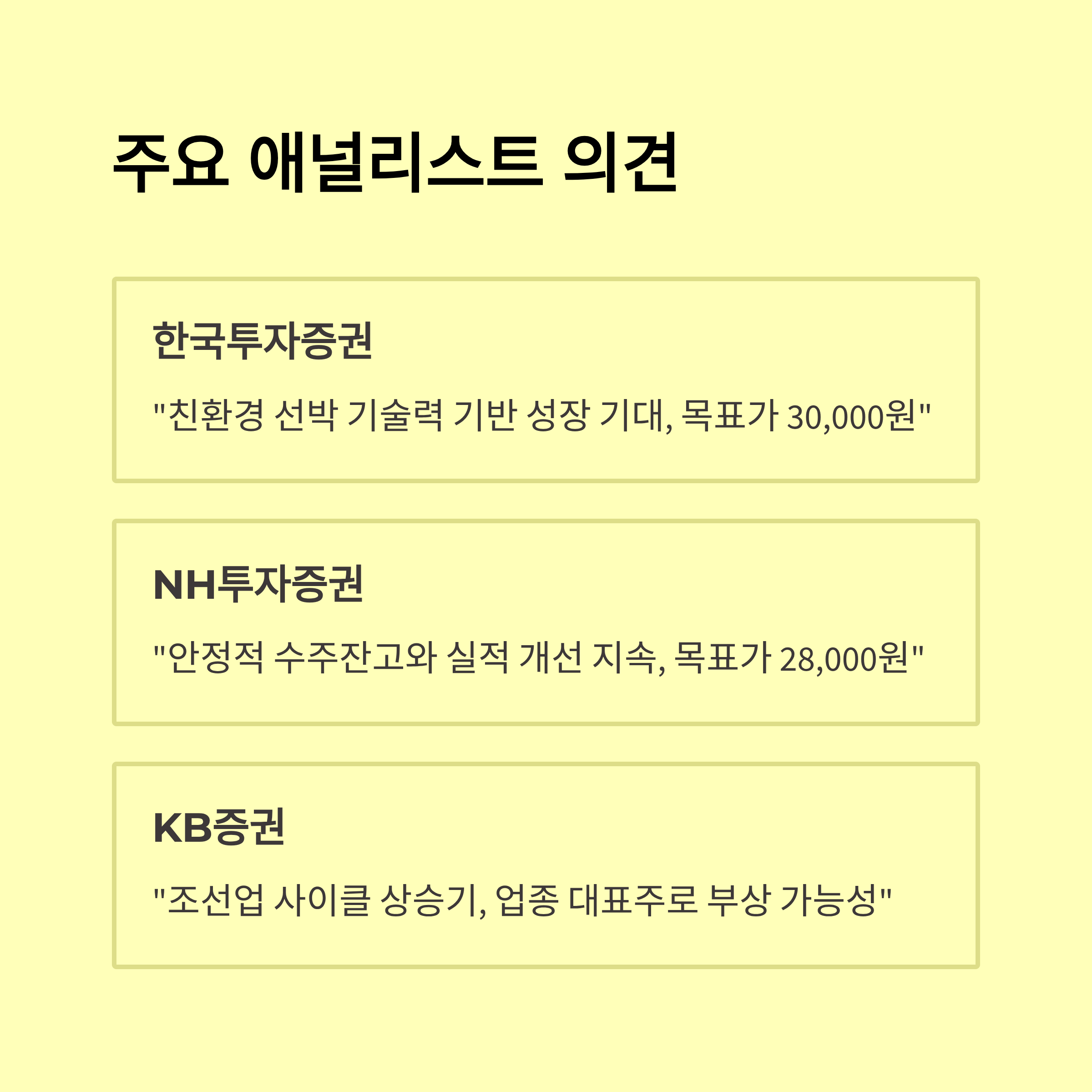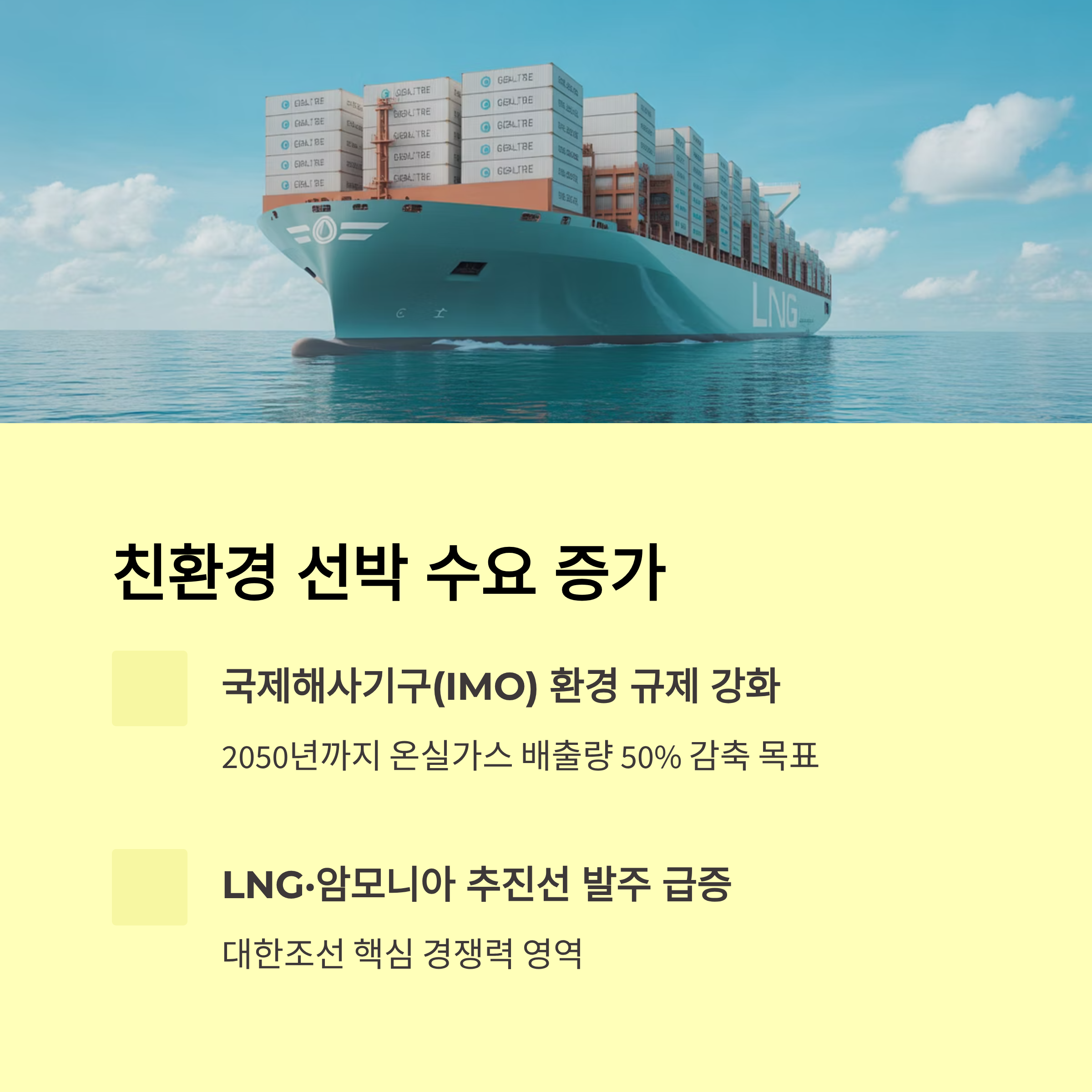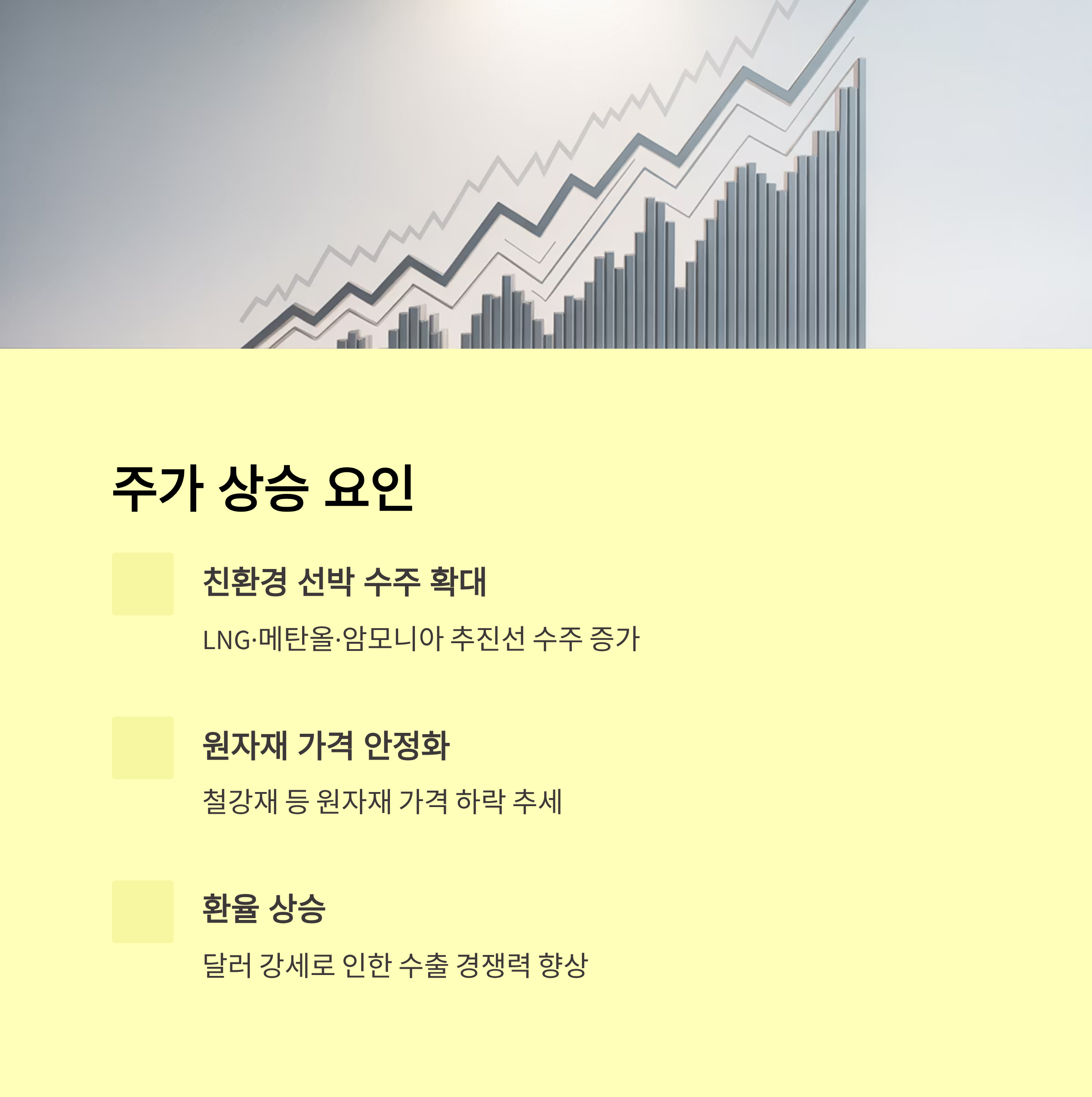 | 선박 수주 증가 | 수익성 개선 → 주가 상승 요인 |