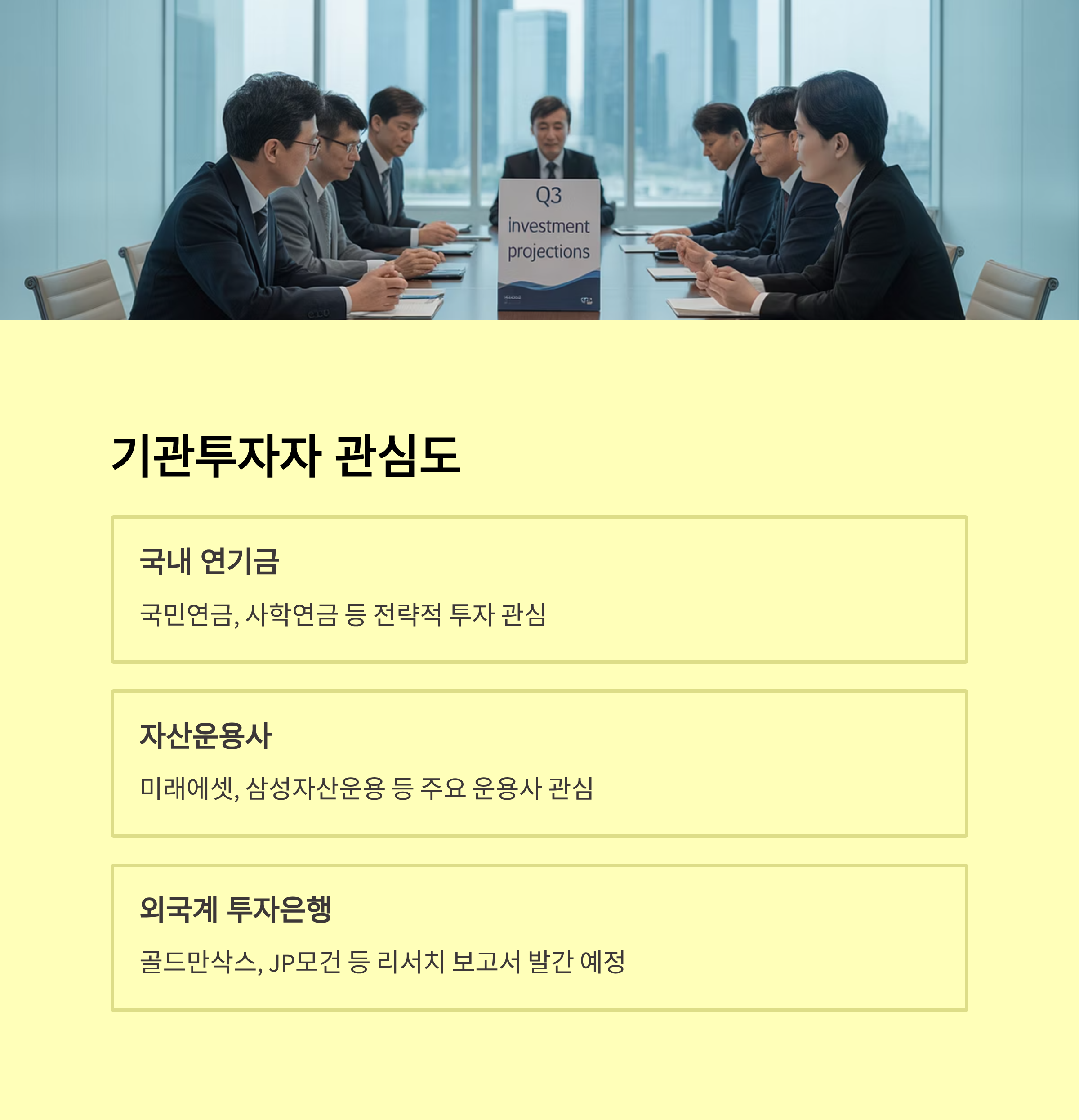 상장 이후 기관 투자자들의 비중은 약 32% 수준이에요. 특히 연기금, 공제회, 보험사들이 일정 지분을 꾸준히 유지하고 있고, 이는 안정적인 투자 기반으로 작용하고 있어요.