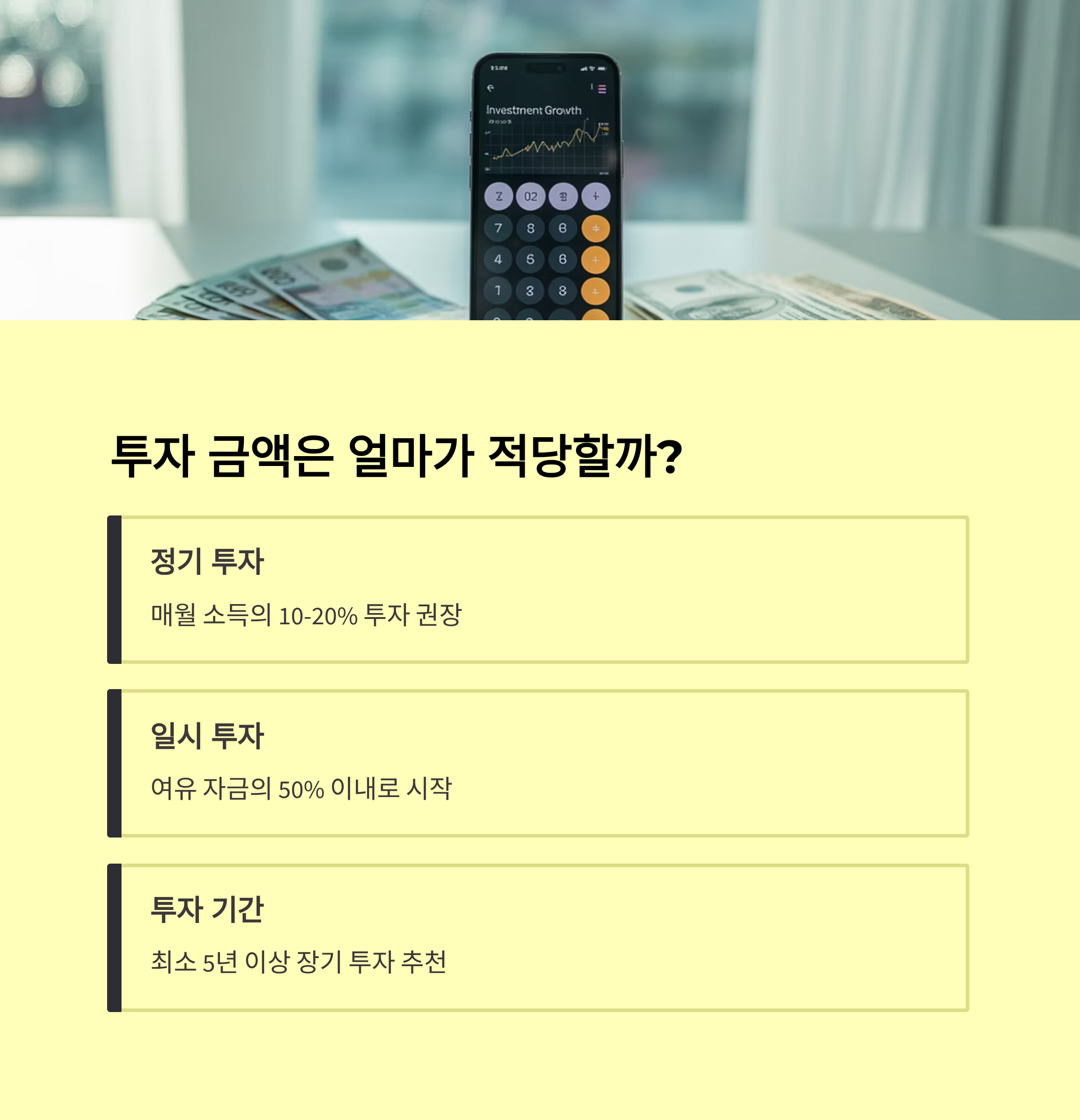 A. 아니요! 정액 분할 매수(적립식)가 가장 효과적입니다. 시장예측 스트레스를 줄이세요. - Q. 최소 투자금액이 걱정됩니다.