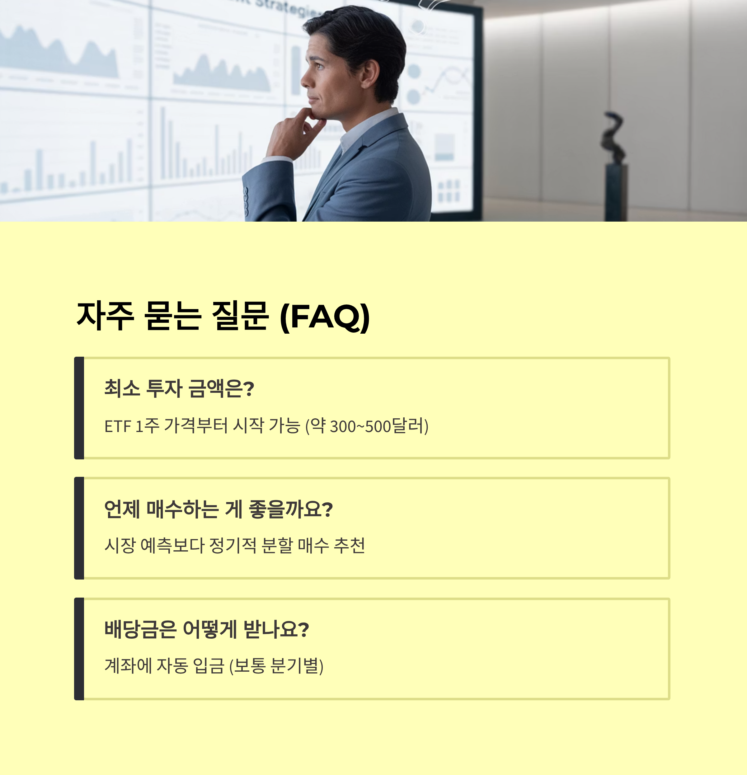 - 해외 ETF: SPY, VOO, IVV 등(달러 환전 필요, 배당 직접 수령)