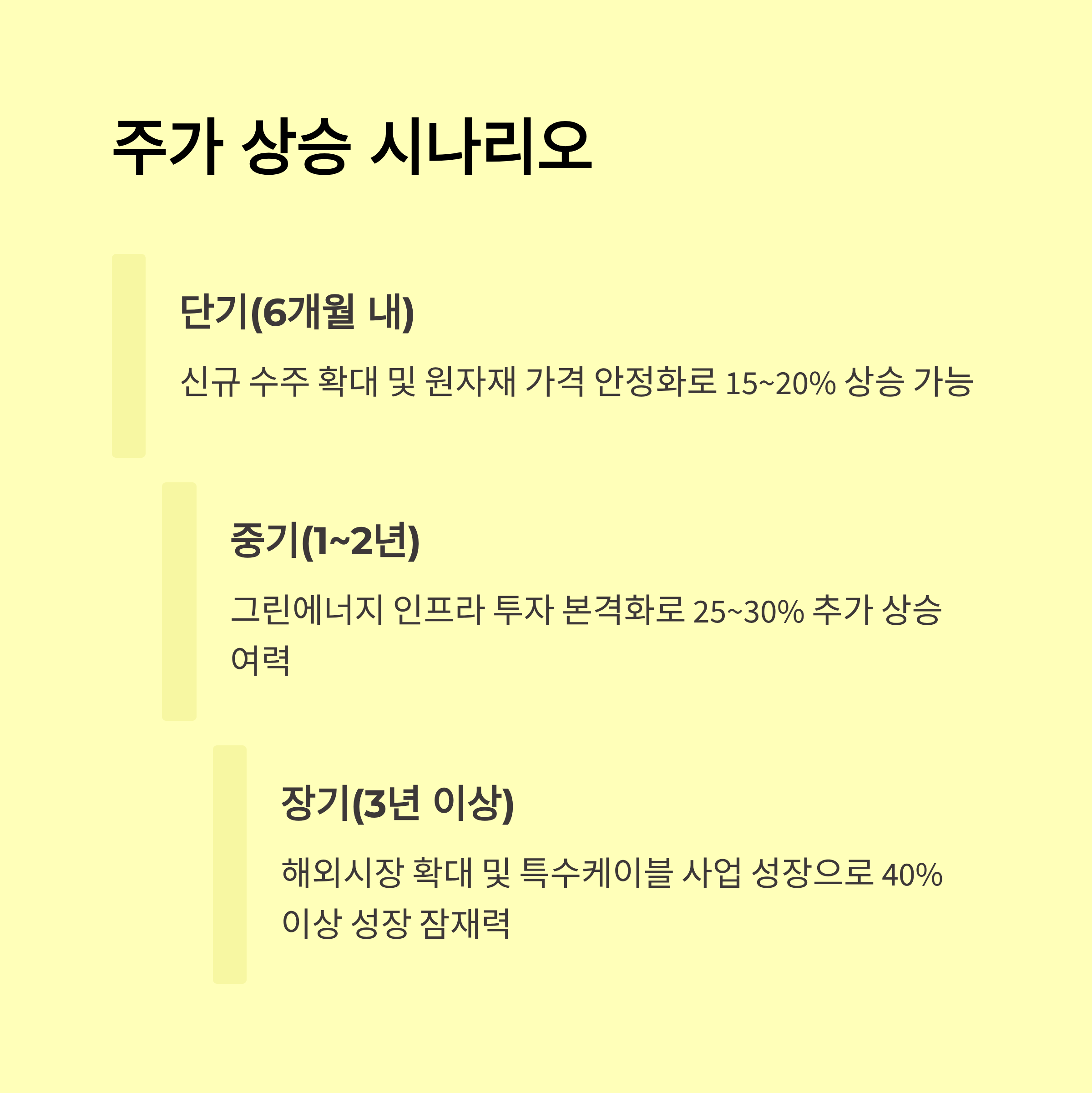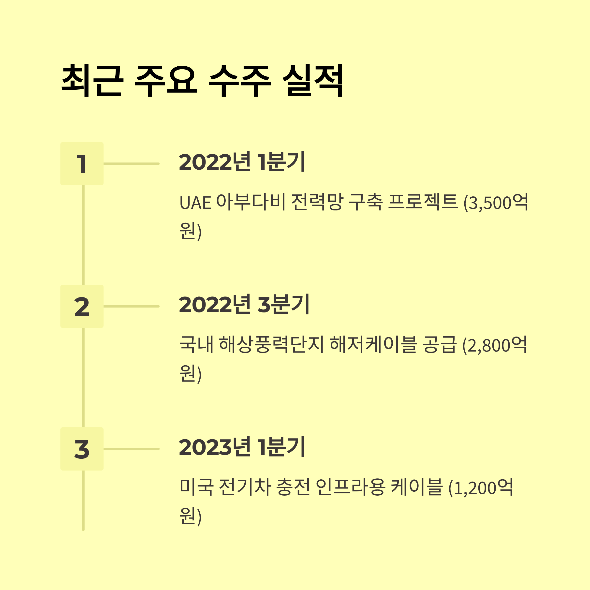 해외·국내에서 HVDC(초고압직류송전)·해저케이블 등의 고부가가치 분야 수주가 늘어나면서, 미래 성장동력에 집중한 중장기 기대감이 커지고 있는 상황입니다.