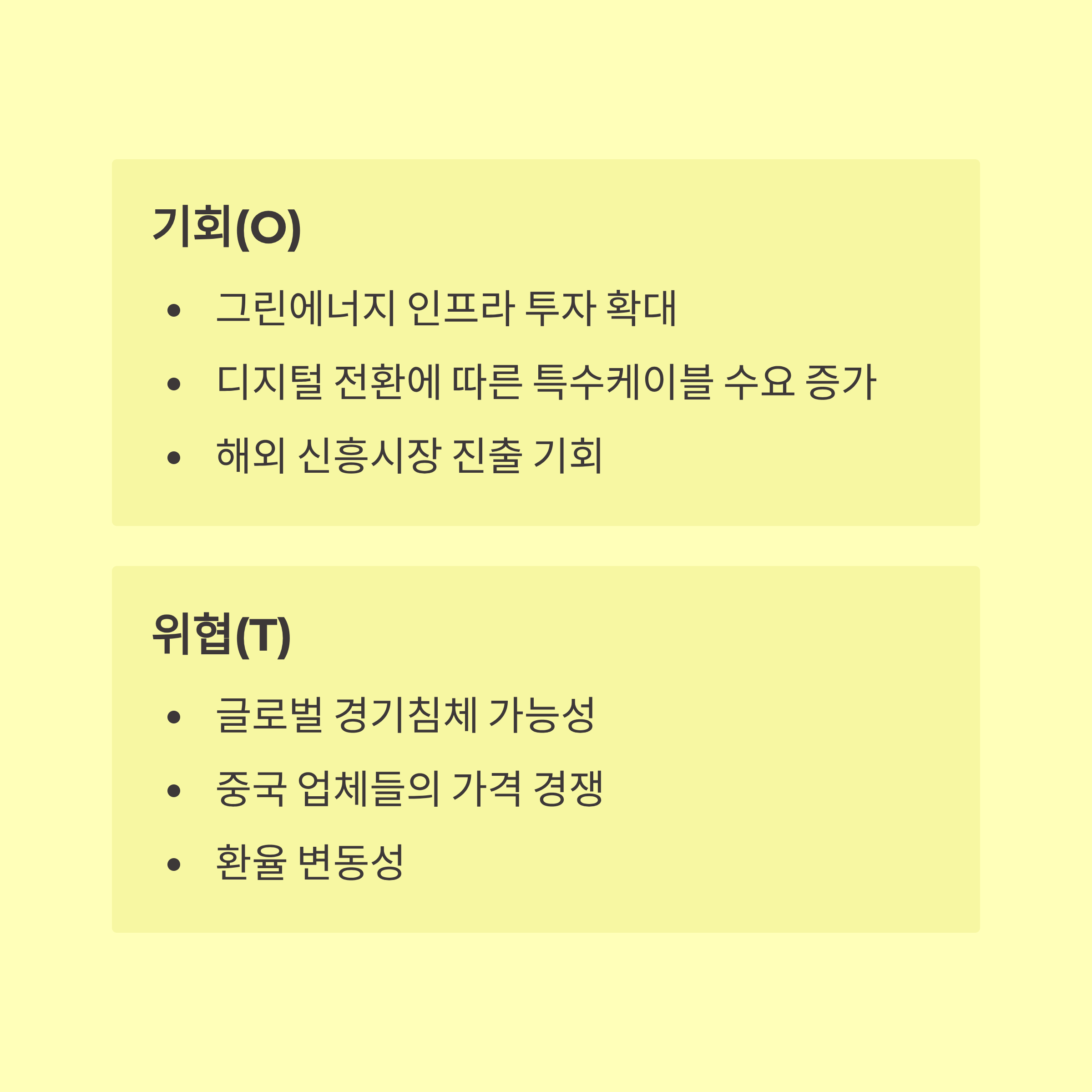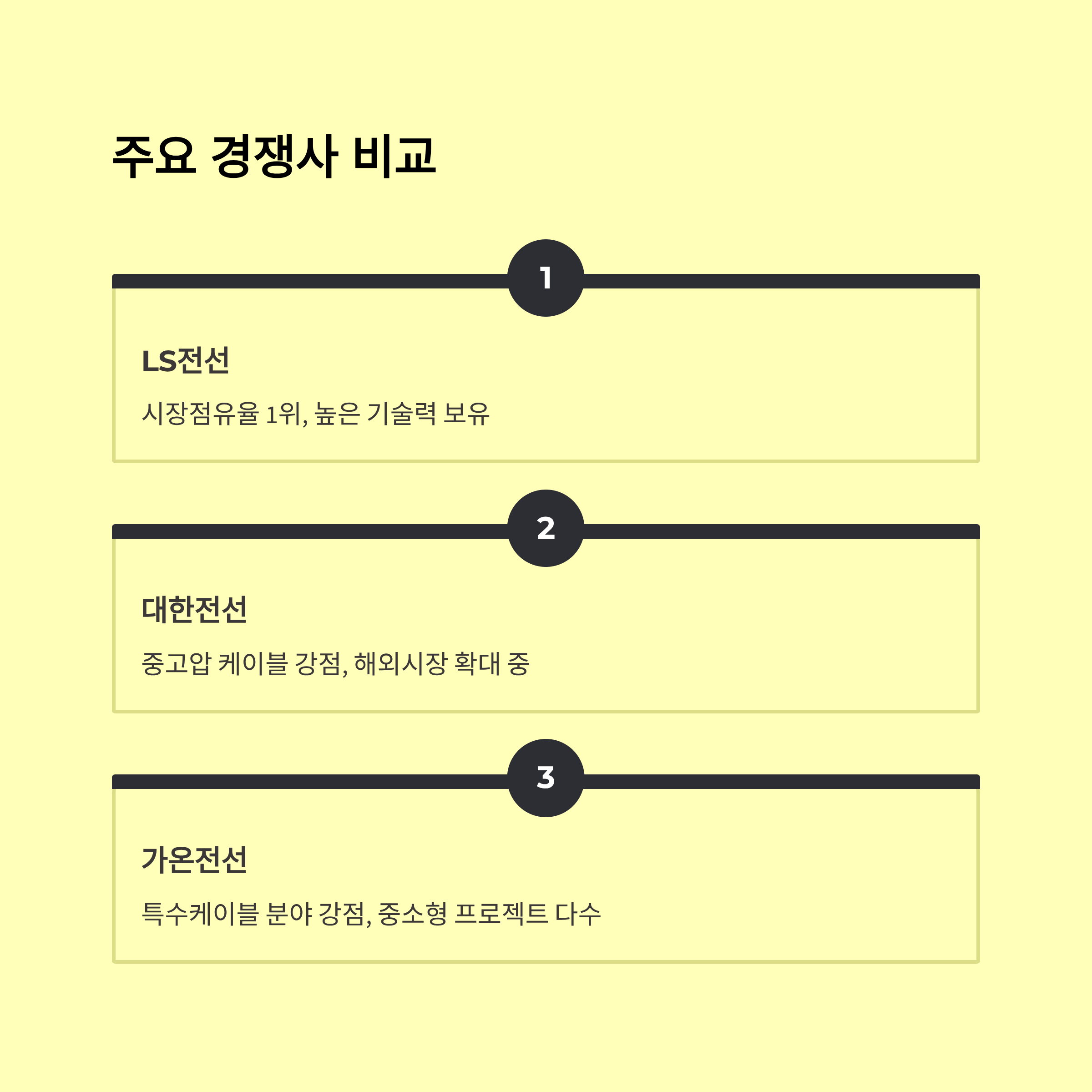 - 경쟁사(LS전선 등)와 기술력 차별화·시장점유율 경쟁 극심