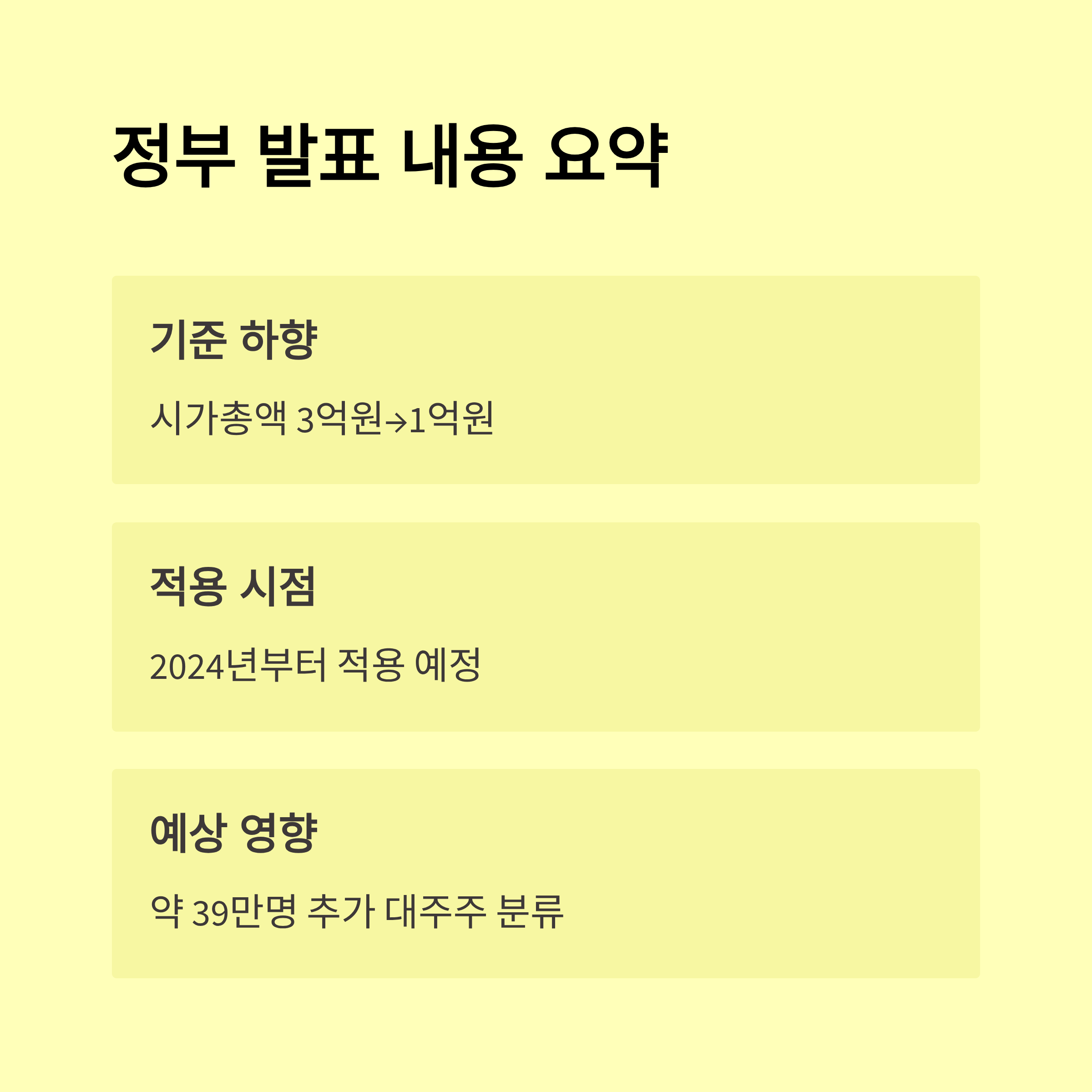 - 주식 가치 10억 이상 보유자 전원 대주주 과세 대상 편입