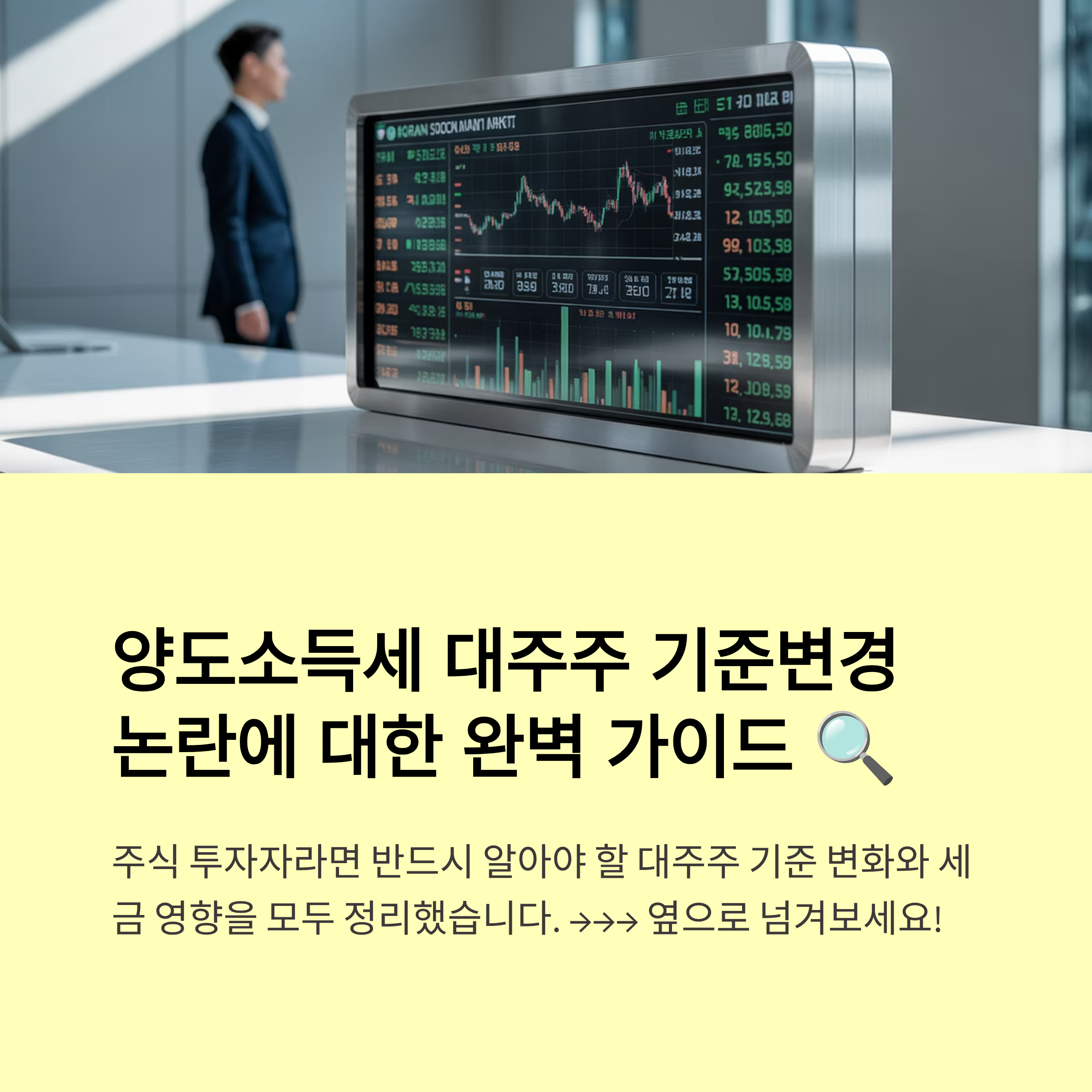 정치권이 조만간 대주주 요건 관련 대안을 발표할 가능성이 점차 커지고 있습니다. 정책 유예, 단계적 시행, 예외 규정 보완, 절세 지원책 등 다양한 방안이 거론중입니다. 시장에서는 불확실성을 최소화하기 위하여 “분할 매수”, “장기 투자 포트폴리오 다변화”, “연말 대량 매도 주의” 등 리스크 관리가 절실하며, 신중한 현명한 투자 전략으로 대응할 필요가 커지고 있습니다. 대주주 과세가 확대되지만, 근본적으로 기업 성장력과 실적 개선이 주가 상승의 가장 중요한 열쇠인 점도 명심해야 합니다.