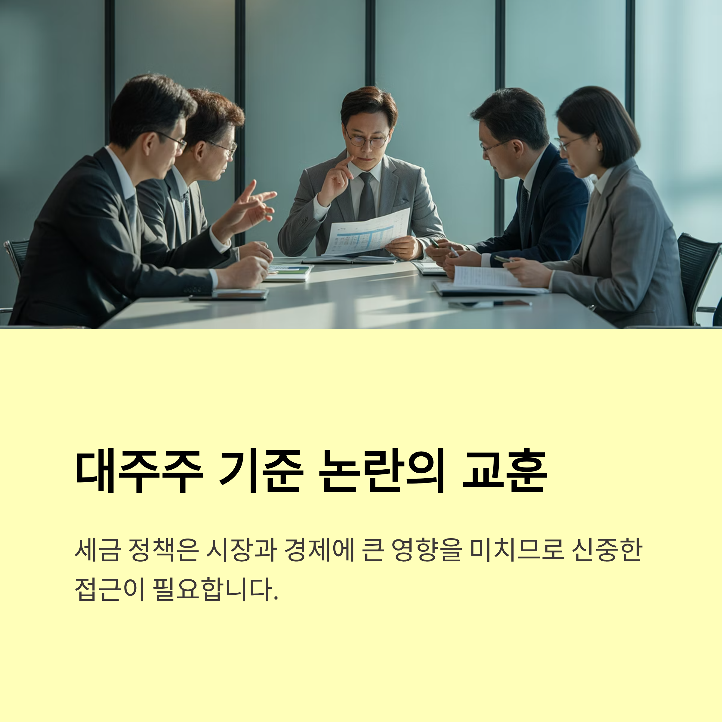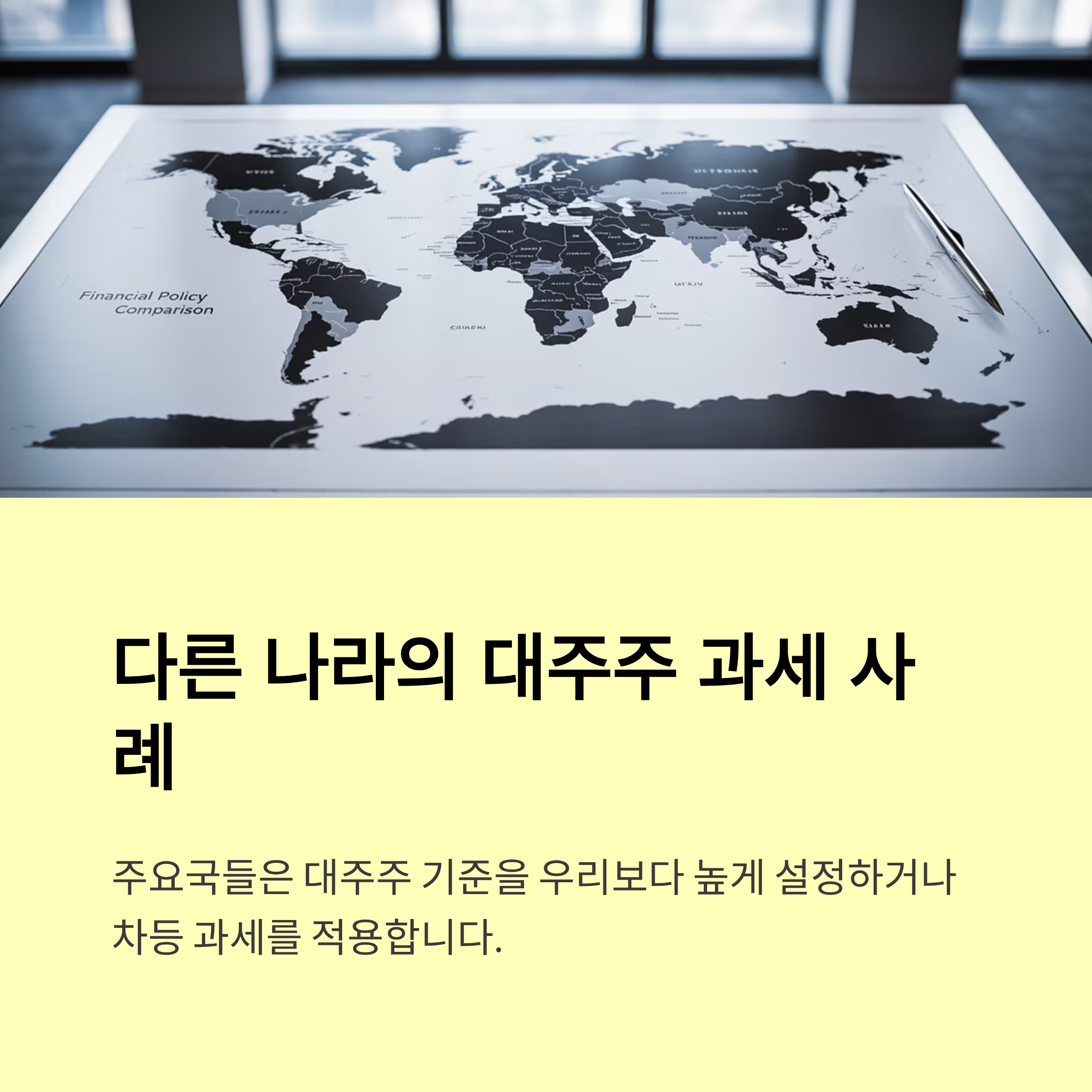 대주주 기준 세제 강화는 해외 여러 선진국에서도 비슷하게 적용되는 사례입니다. 미국, 일본, 유럽 주요국 역시 일정 규모 이상의 주식 양도소득에 대해 형평성 있는 과세체계를 유지 중입니다. 하지만 정책의 시행 방식, 과세 여성 기한, 누진 세율 적용 등 세부 내용에서는 각국 정부가 시장 상황과 경제 여건에 맞춰 차별적으로 운영하며 투자자 반응에 크게 신경 쓰고 있습니다. 대한민국의 급격한 기준 축소는 상대적으로 최근 투자자 보호 정책과 배치되며 시장 충격을 키웠다는 점에서 해외 사례에 비해 다소 급진적이라는 평가도 나옵니다.
