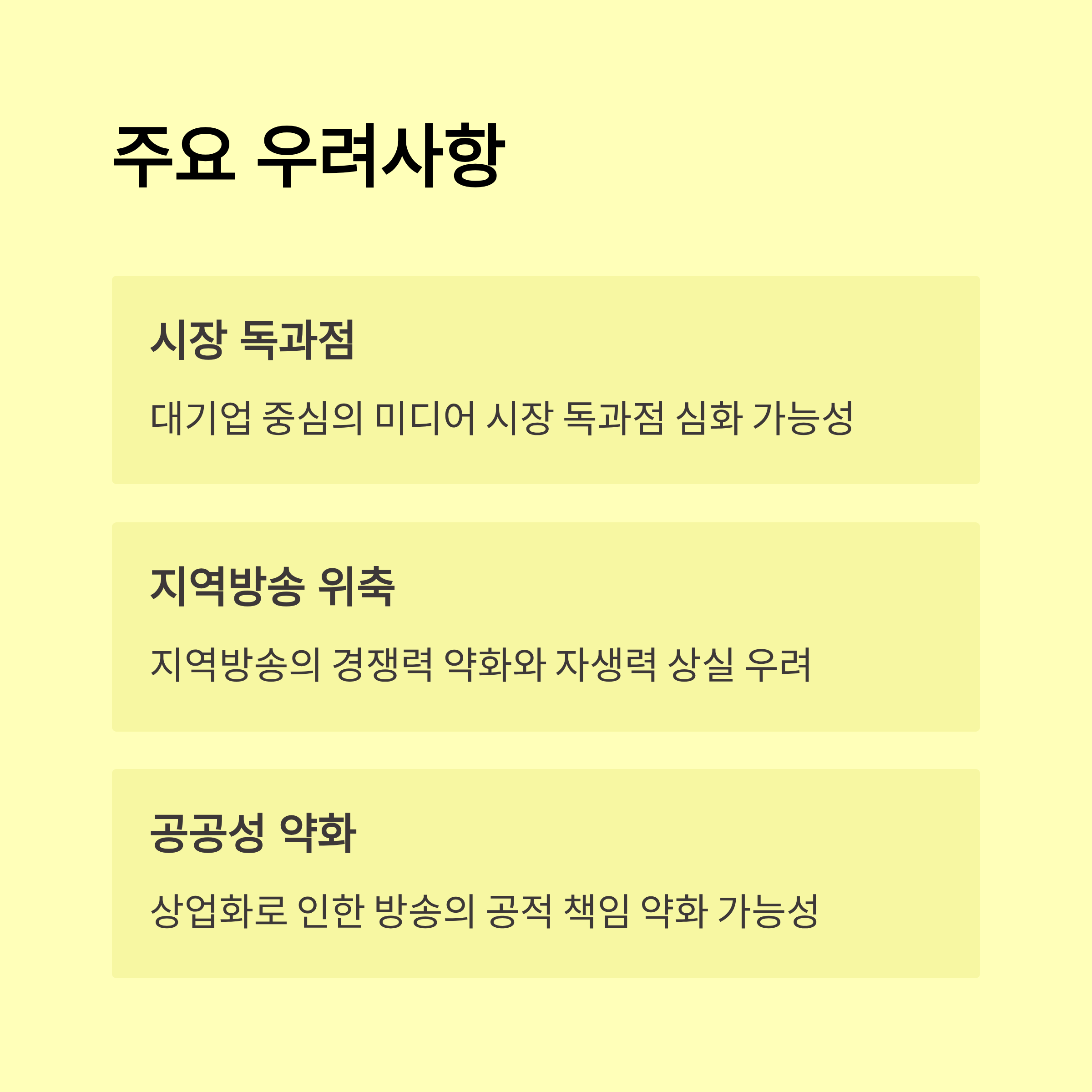 A. 이사 추천권 왜곡, 시민추천위 루트에 이념 편중, 정권 성향과 무관한 방송 독립 실효성 미흡 우려 등.