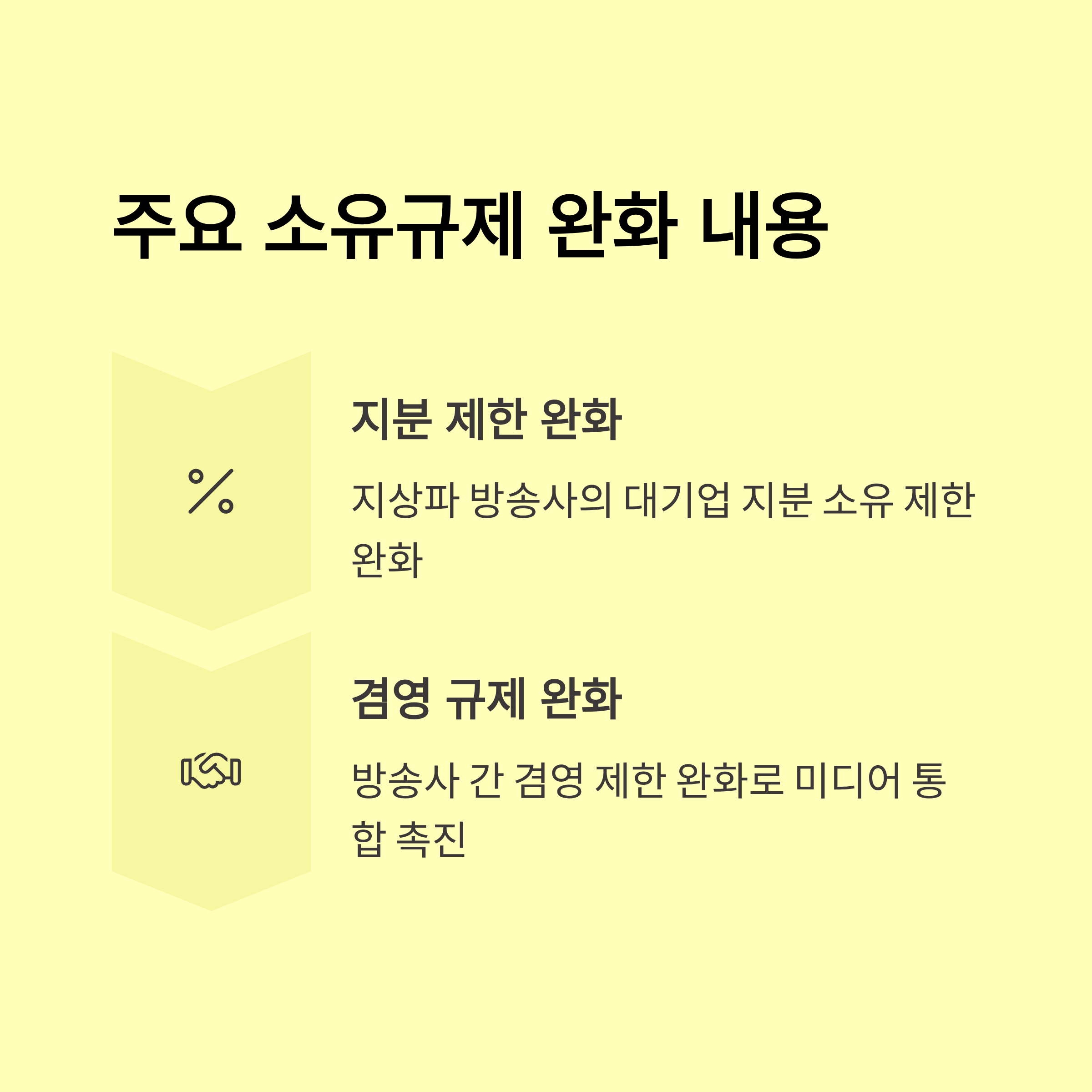 - 기존에는 국회(여야 교섭단체) 추천 이사 100%; 개정안은 국회 추천 이사 40%로 축소, 나머지는 시민·시청자위원회, 방송사 임직원, 학계·법조계 등에서 추천