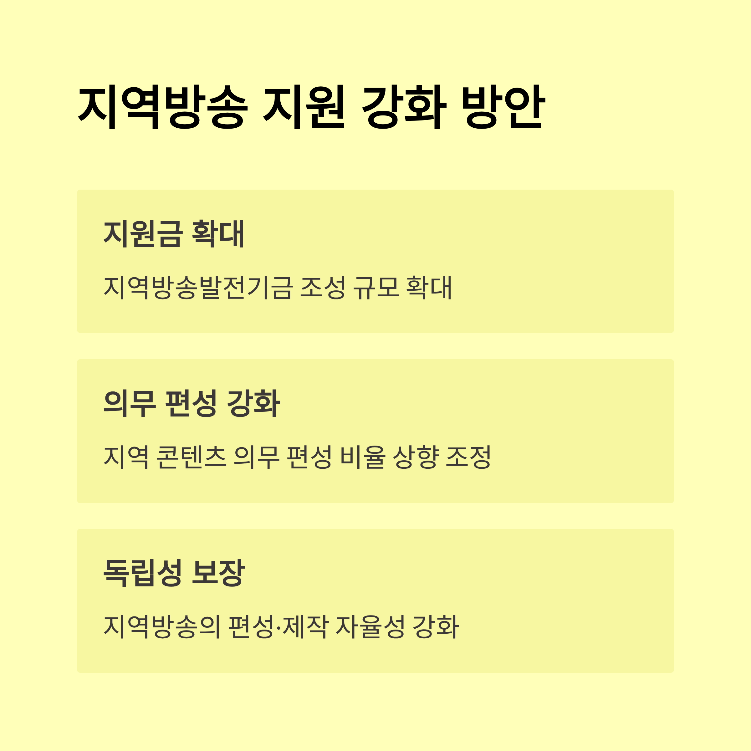 2025년 개정안은 KBS·MBC·EBS 등 대한민국 주요 공영방송의 이사회 지배구조 혁신, 이사추천 다원화, 사장 선임 절차 독립성 강화, 편성권 보호 및 경영 투명성 확대가 골자입니다.