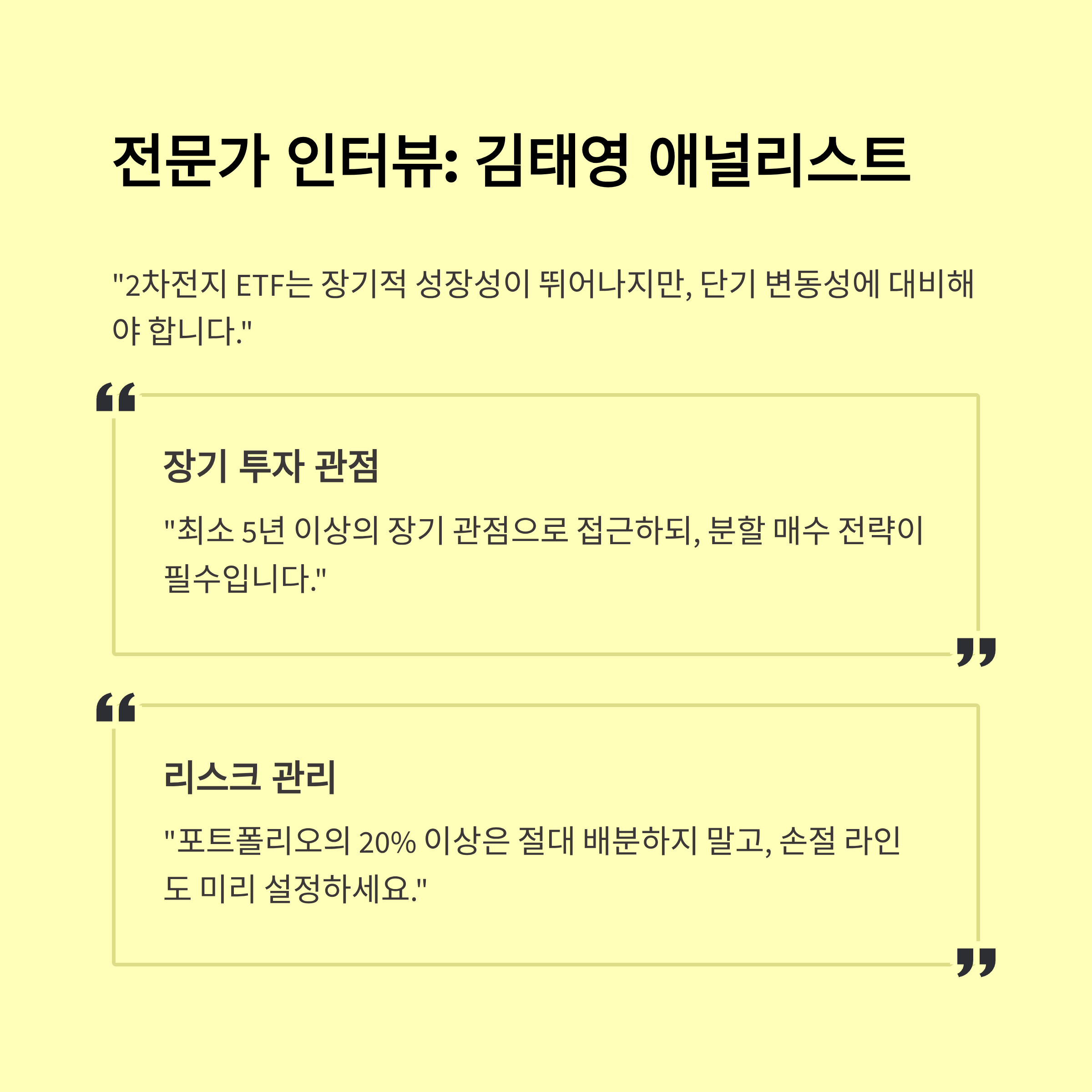 ETF는 개별주 대비 리스크 분산, 단 테마 전체의 변동성과 정책 반전에 따라 급락 가능성도 유의. - 배터리/ESS ETF를 동시에 살 수 있나요?