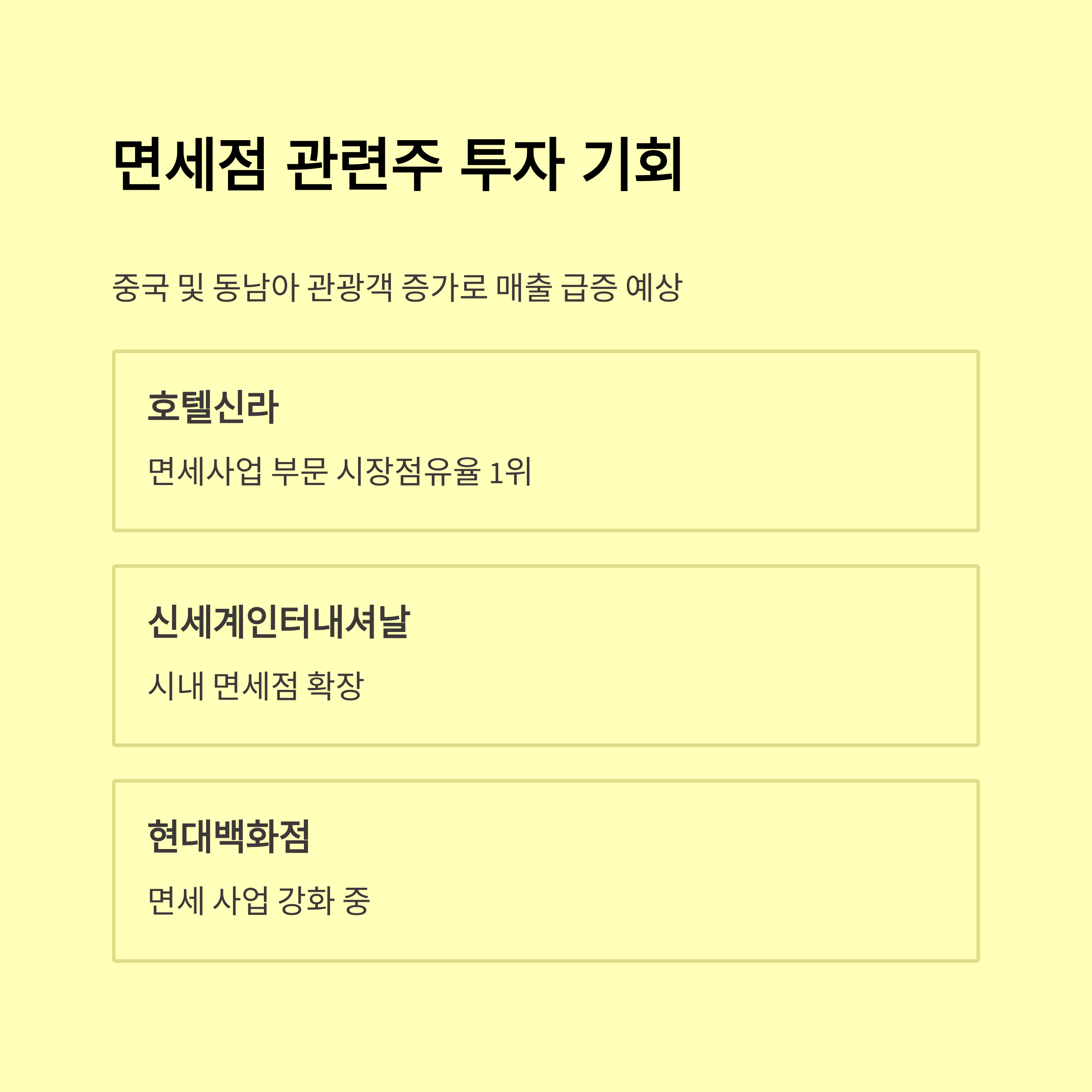 | 호텔신라(008770) | +5.21% | 미공개 | 면세점·호텔 대표/중국 VIP매출 비중 높음 |