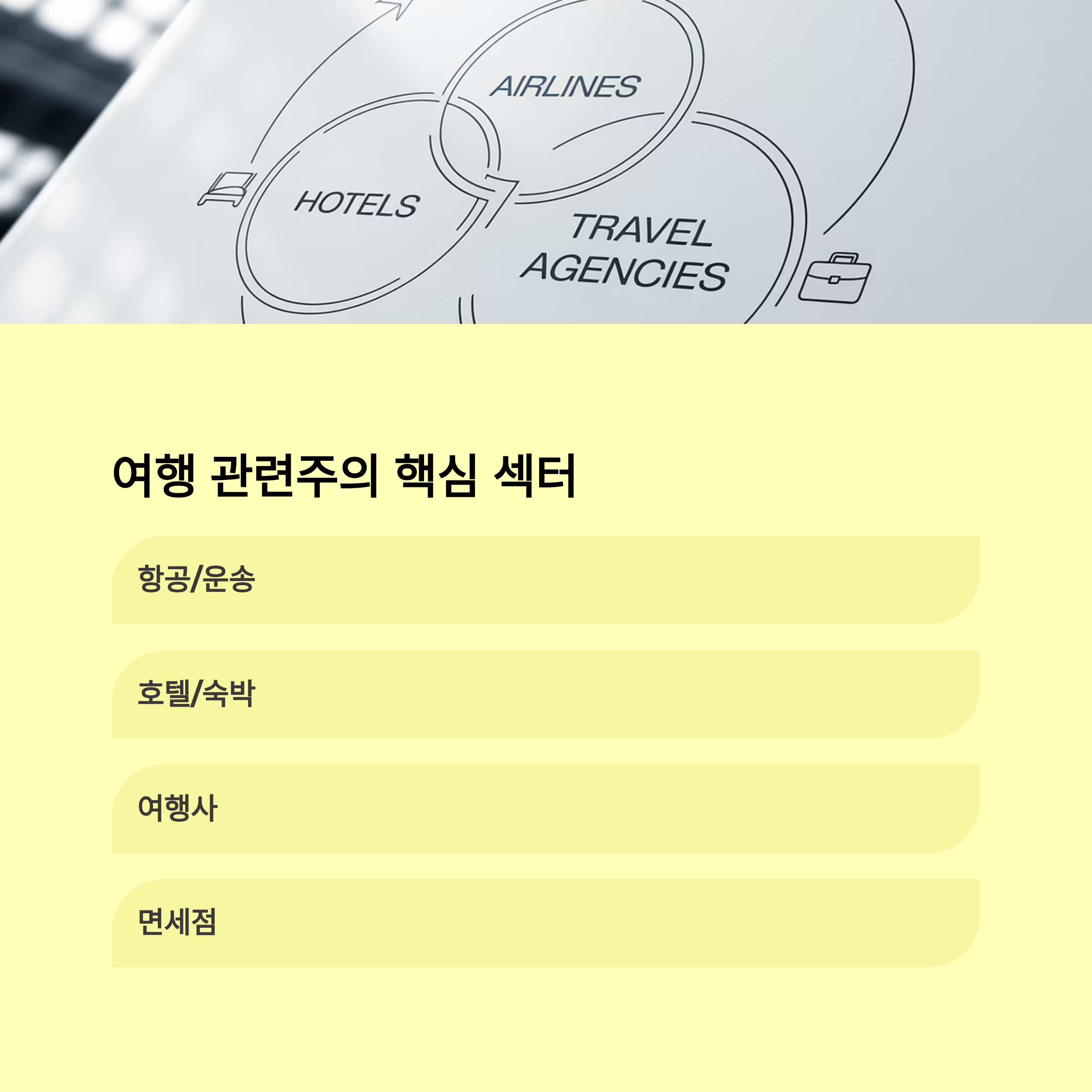 A. 주도주(여행사), 중장기 호텔·면세, 숨은 수혜 항공·지방관광까지 선택지 넓음. 테마 몰빵보다 분산 추천.